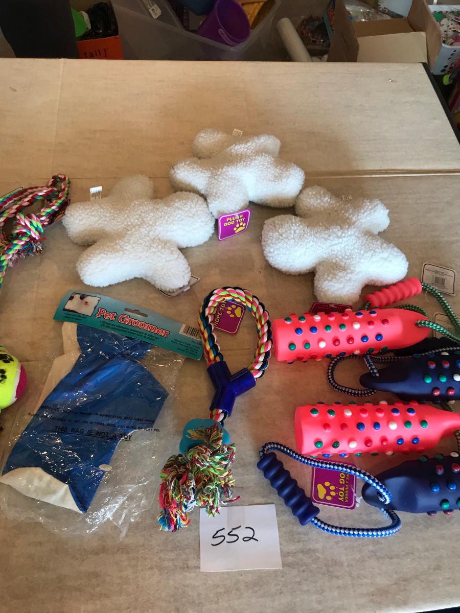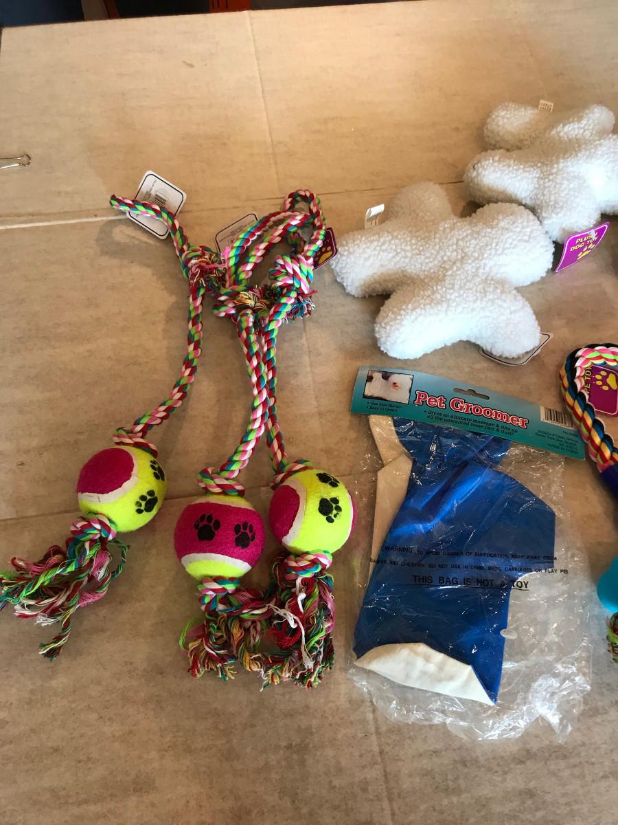 Flat of new dog toys