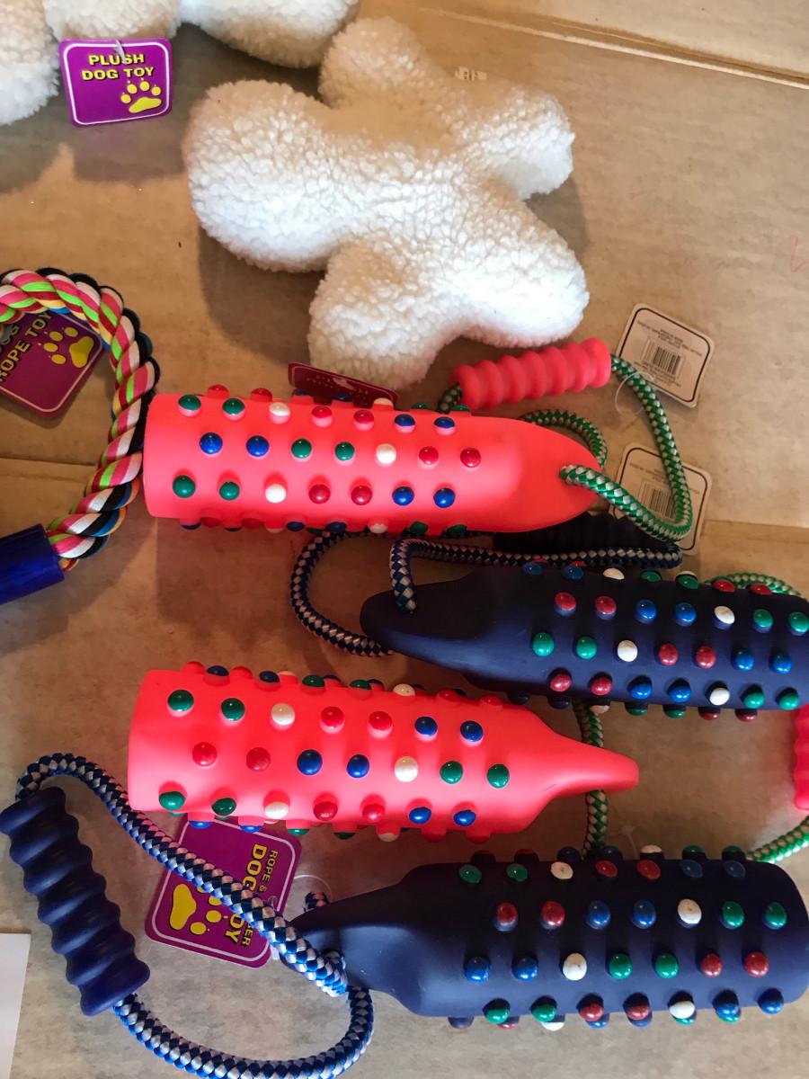 All new, ready to play with the dog! These would be for a larger sized dog...maybe a Lab.