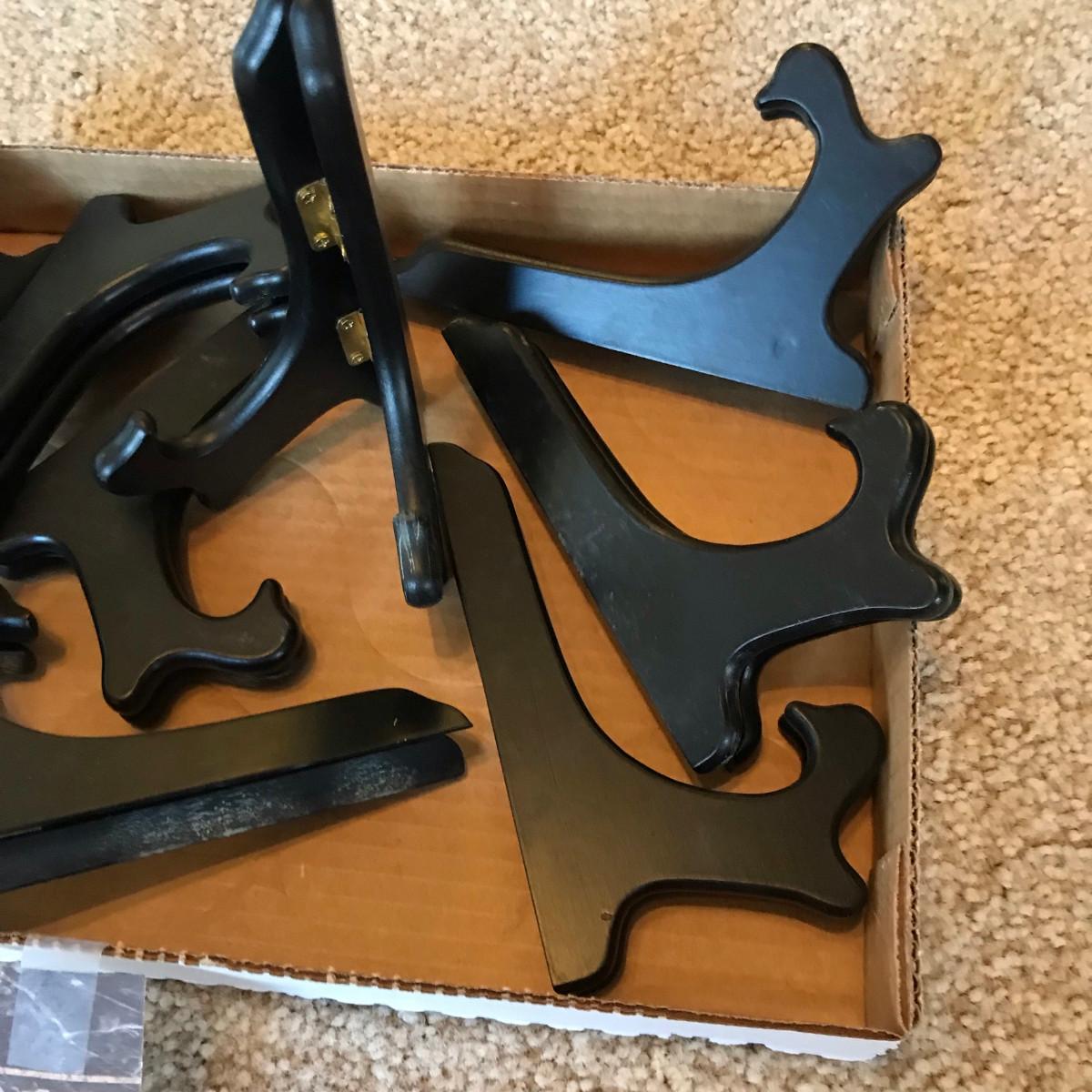 Easels, thank goodness for autocorrect! I can't spell today. I'm working on trying to get this auction together and on a Sunday! So now I can't spell. Esles just didn't look right. I hate when I can't spell and then autocorrect comes up with dumb suggestions... geeze. Oh, like you wanted to read all of my troubles...sorry. Here are some Easels for your plates. Thankyouverymuch!