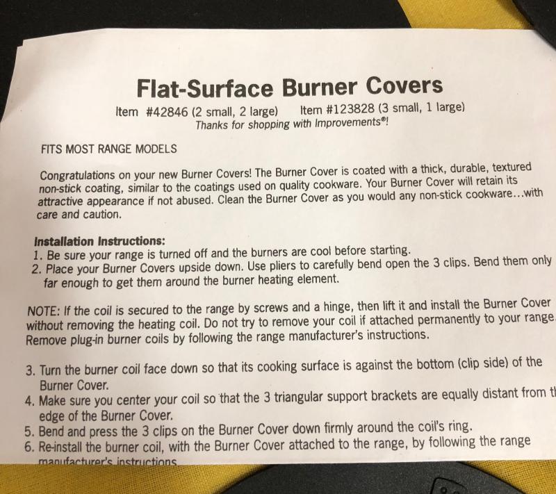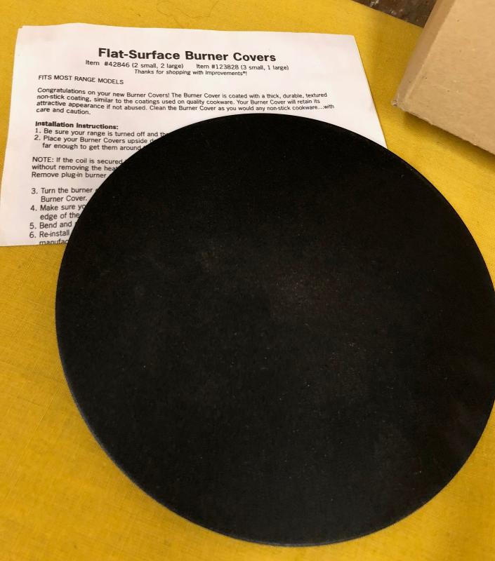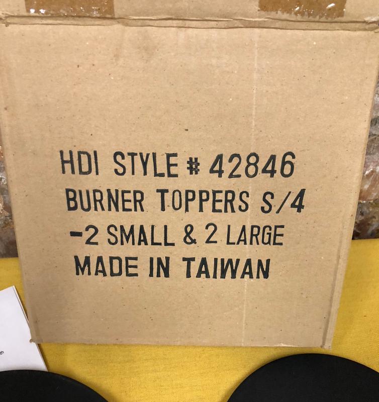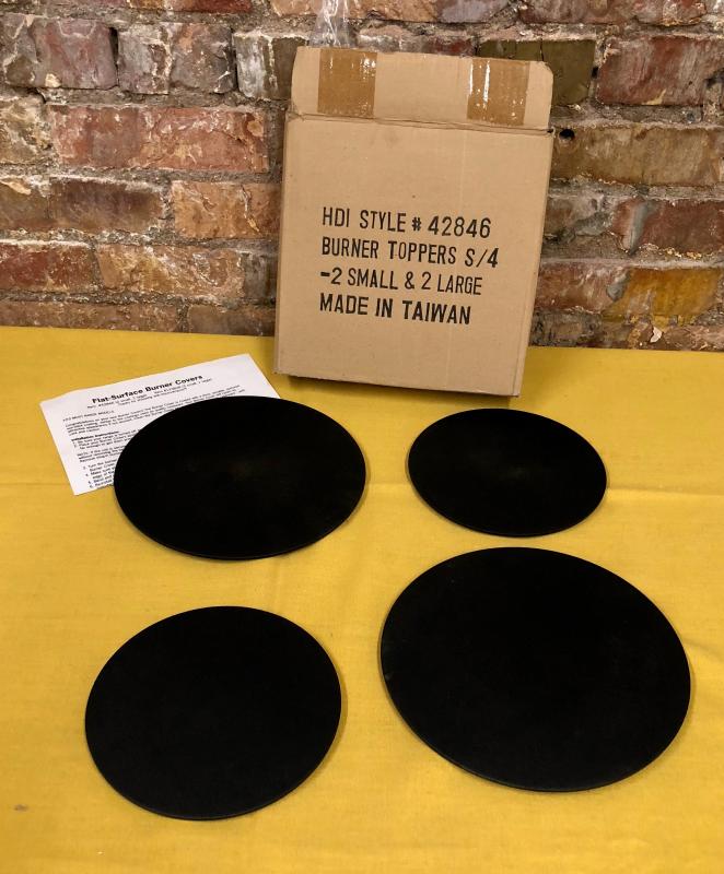 Here is a set of four flat surface oven burner toppers...with securing clips...new condition...2 small..2 large...