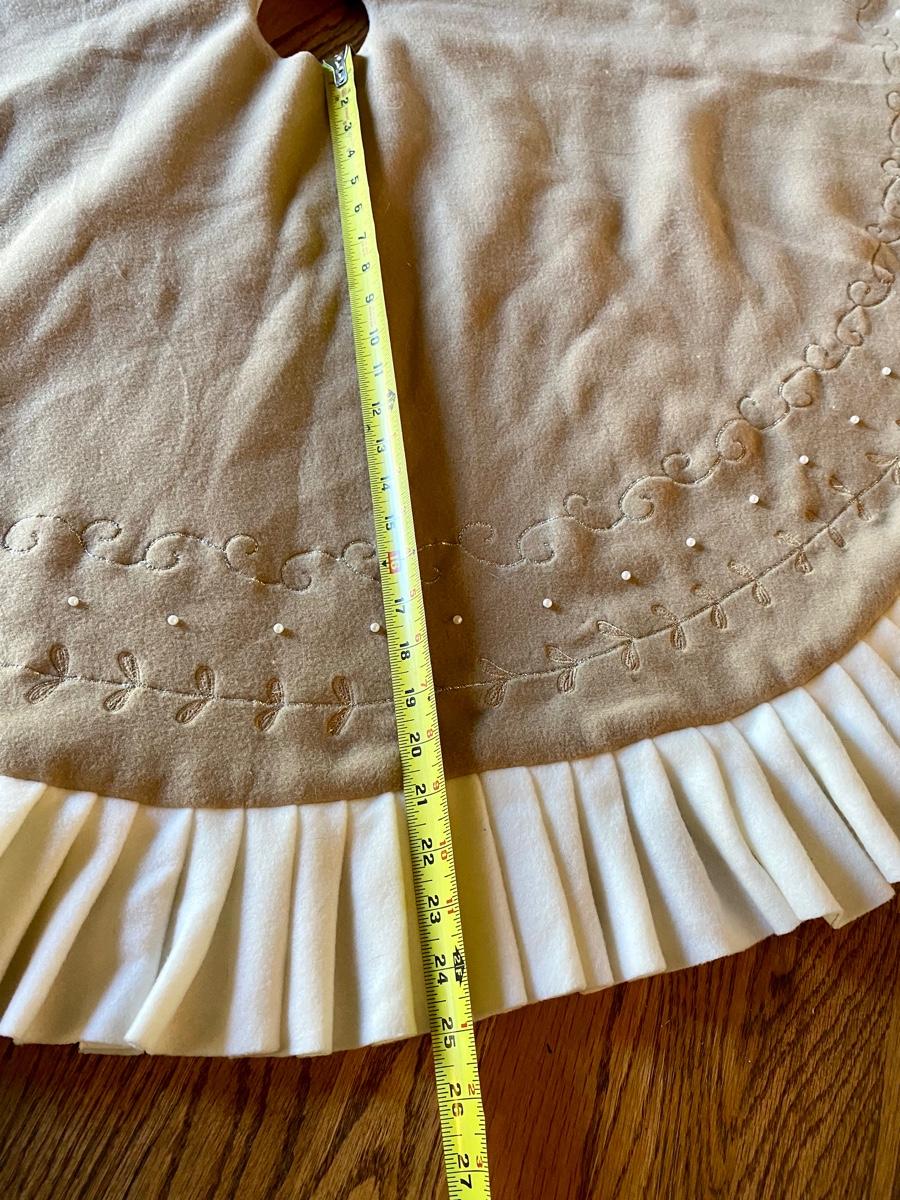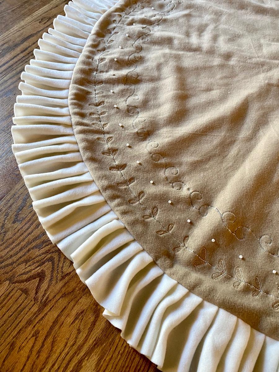 D & F Designs 52" Tan and Beige Winter White Pearls Felt Ruffle Christmas Tree Skirt