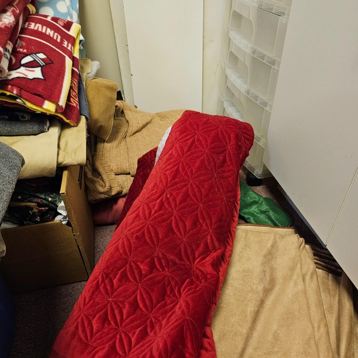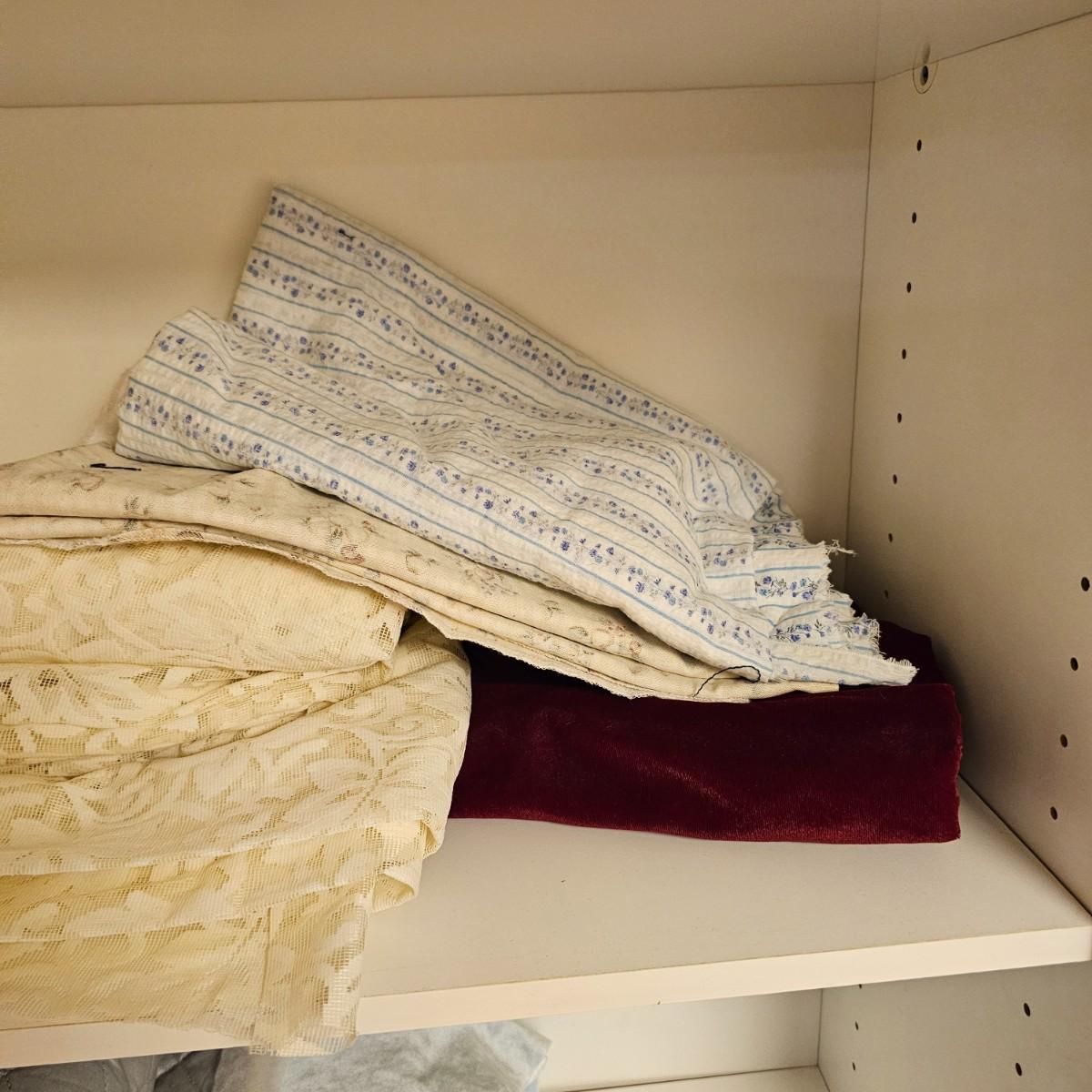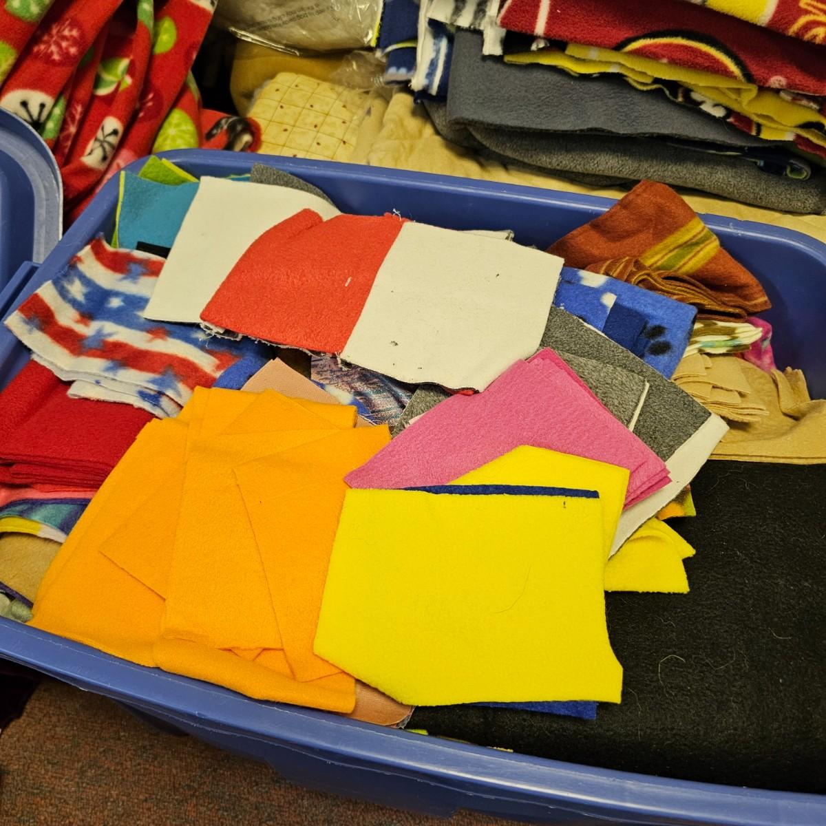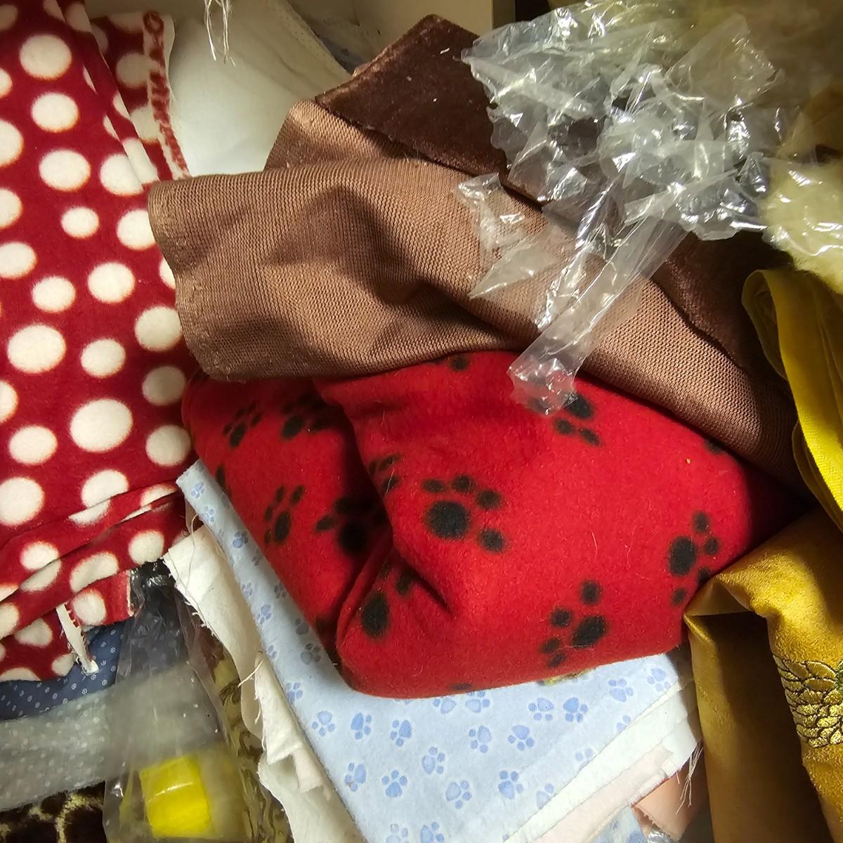If it's soft and fluffy it is probably in this batch. All manner of blanket type fabric with lots of colors, patterns, sports team logos and more. Pieces for quilt backs or other uses. Also includes velveteen, some leather and many pieces already backed with batting. Several projects in work as well. Long rolls of red and blue are 62" wide, length indeterminate. Any items in tubs or baskets, they are included. All fabric is sold as is, where is. Winning bidder must bring their own boxes, bags or tubs and pack their winnings for removal. See photos for details. Local pickup only.
