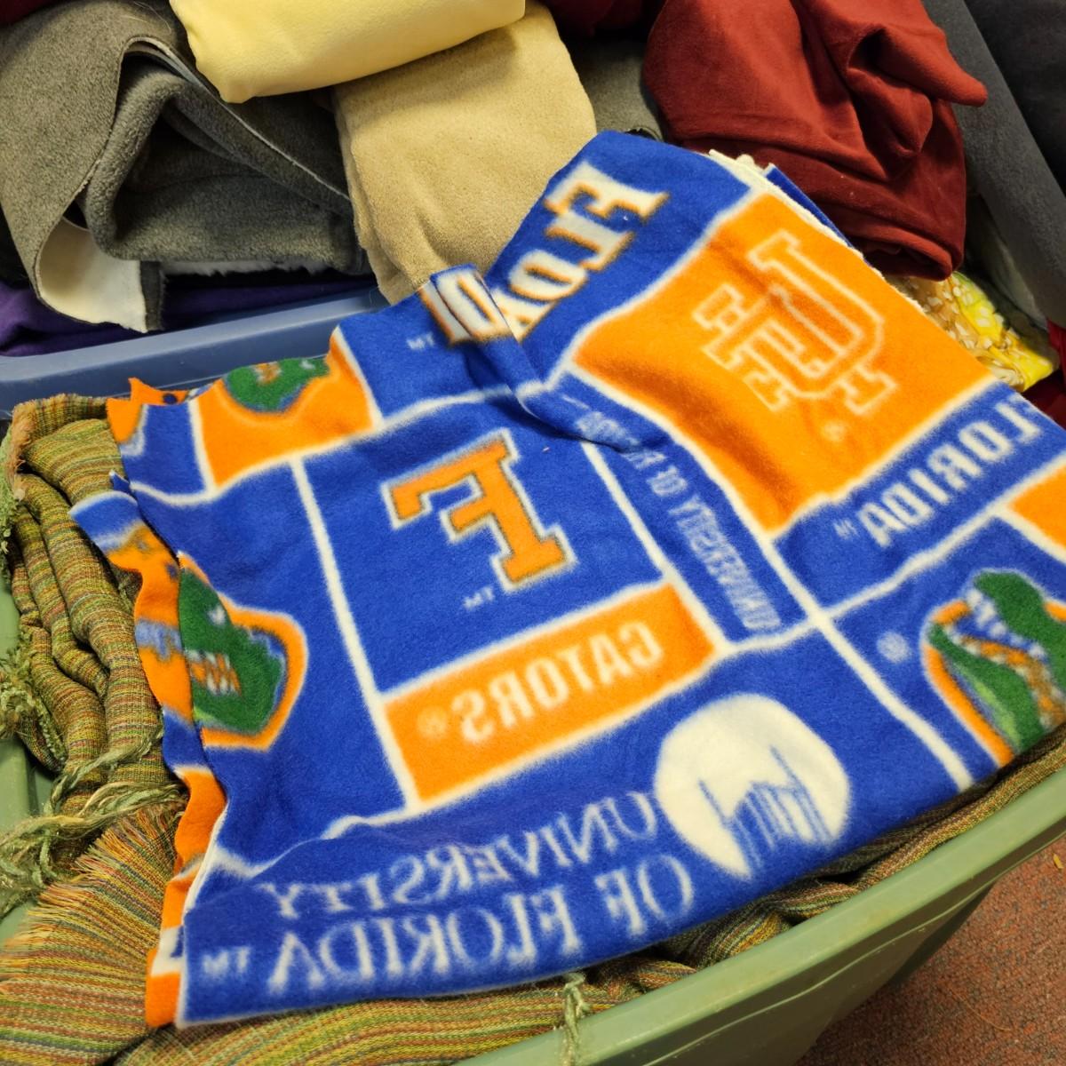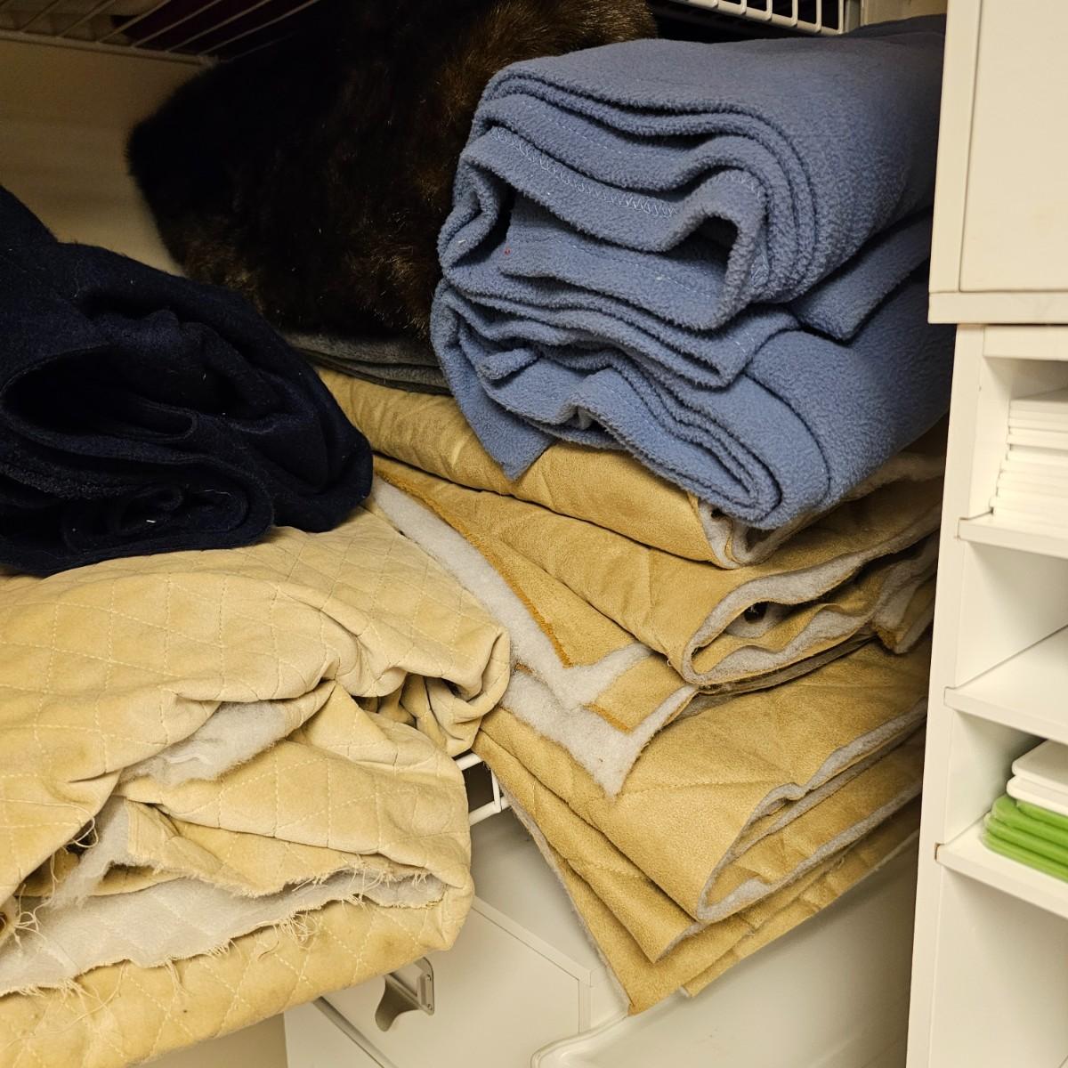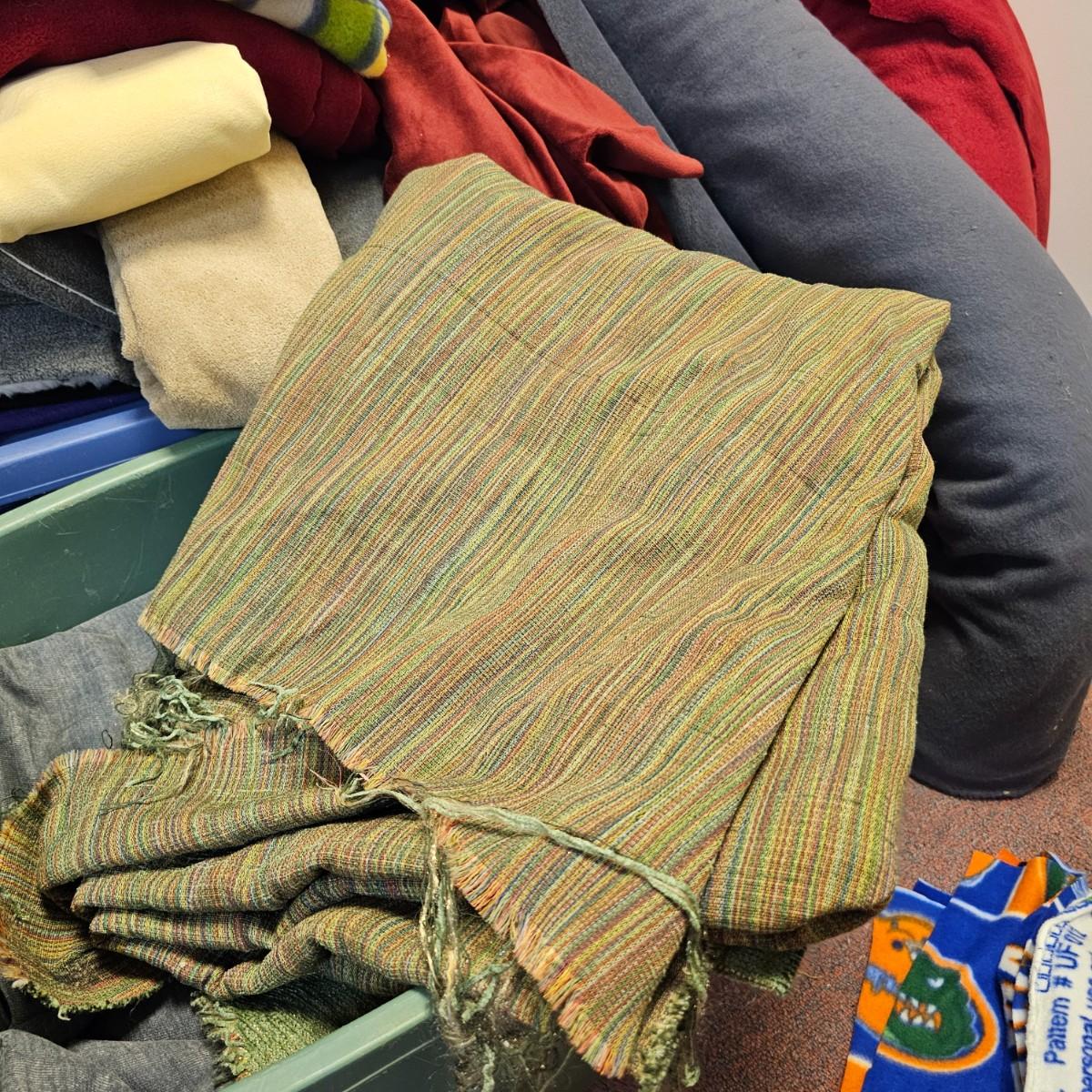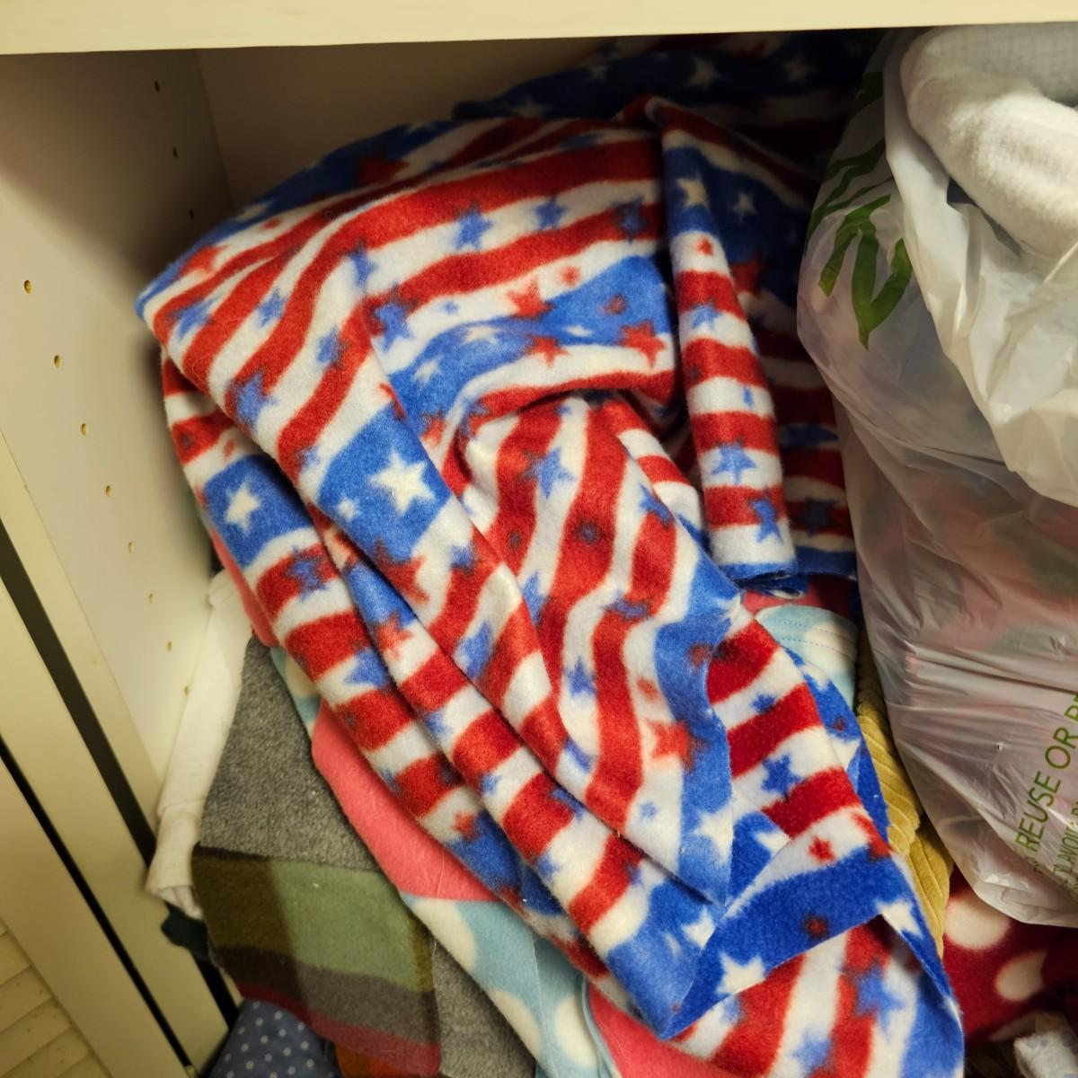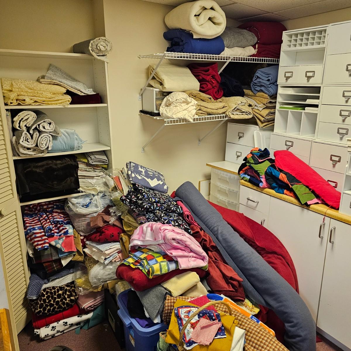If it's soft and fluffy it is probably in this batch. All manner of blanket type fabric with lots of colors, patterns, sports team logos and more. Pieces for quilt backs or other uses. Also includes velveteen, some leather and many pieces already backed with batting. Several projects in work as well. Long rolls of red and blue are 62" wide, length indeterminate. Any items in tubs or baskets, they are included. All fabric is sold as is, where is. Winning bidder must bring their own boxes, bags or tubs and pack their winnings for removal. See photos for details. Local pickup only.