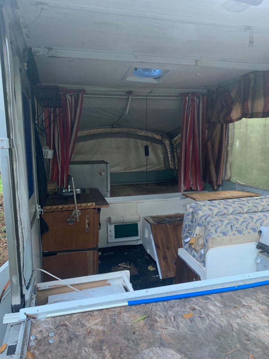 Fleetwood Sedona Camping Trailer. Previously outfitted with dishwasher, microwave, etc, but THIS THING NEEDS LOTS OF WORK & TLC. You are buying the chassis!!! and will have to renovate the interior.
