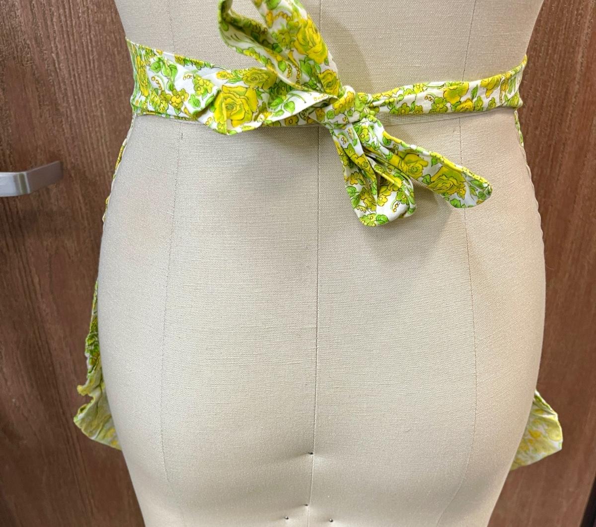 In good used condition.. Pockets in front, ties in back.. Might have a tiny light stain or two.