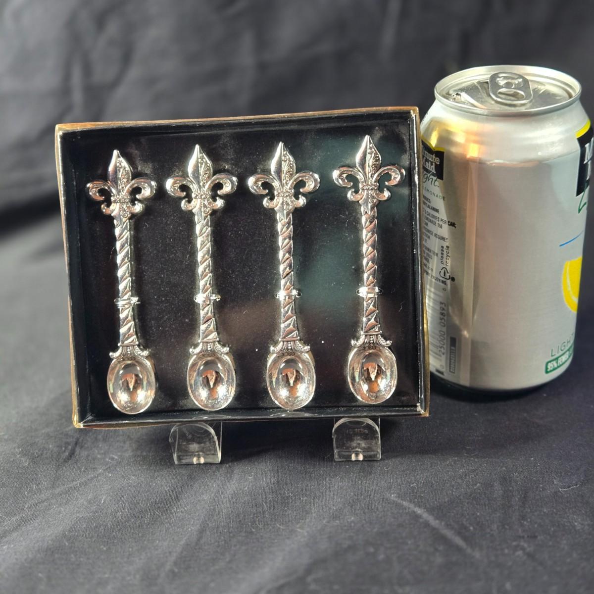 This is for a new boxed set of Fleur de Lis Cocktail Spoons. It's for a set of 4, never used in the original box.