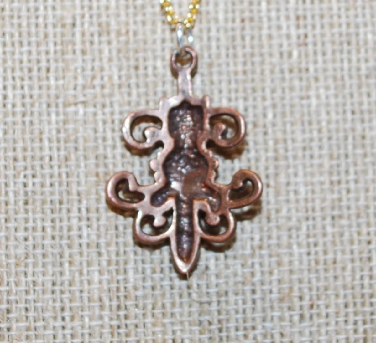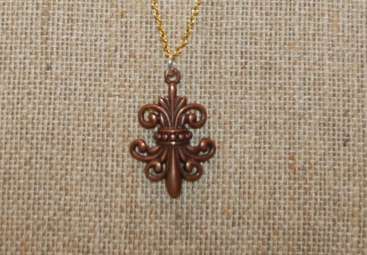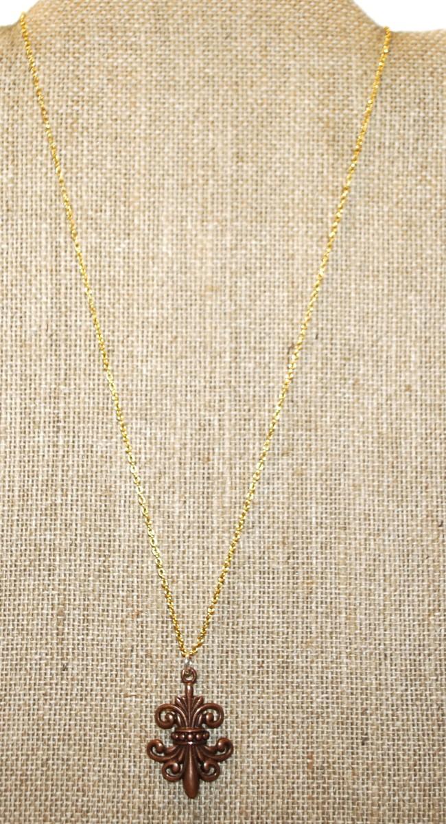 "Fleur-de-Lis" Style Brown PENDANT (1" x ¾") on a Gold Tone Necklace Chain 17" L