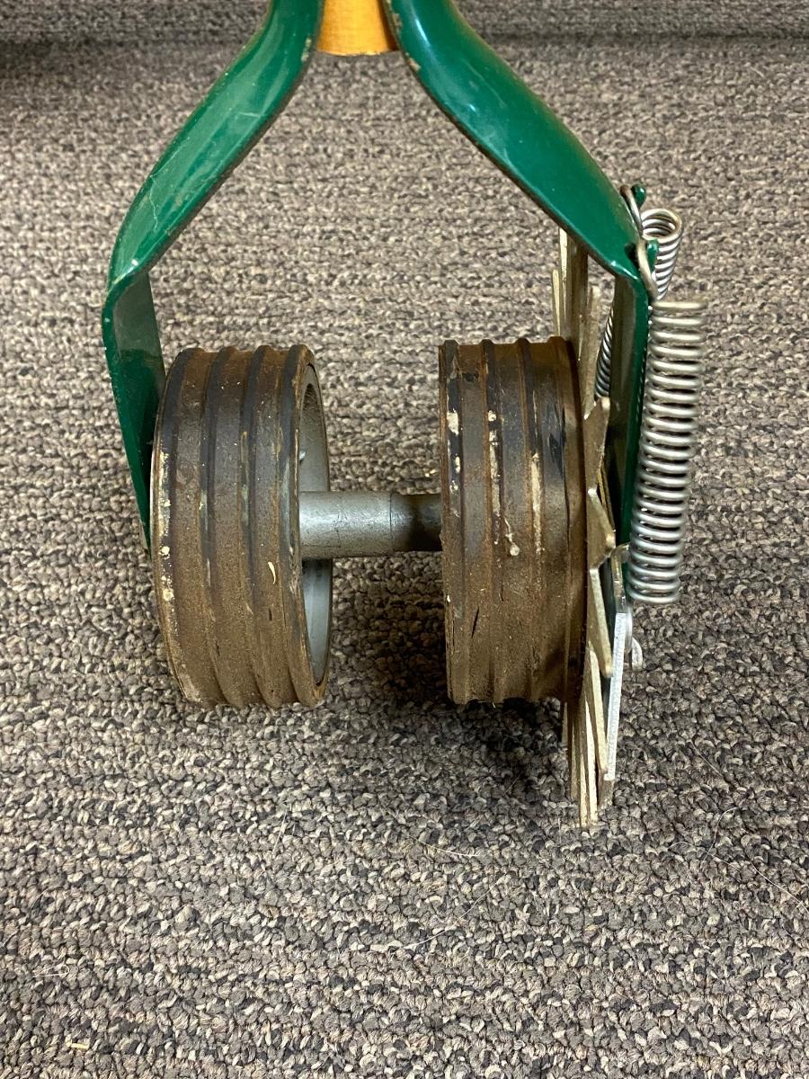 Manual lawn edger from Flexrake. Rolls smoothly. In good condition.