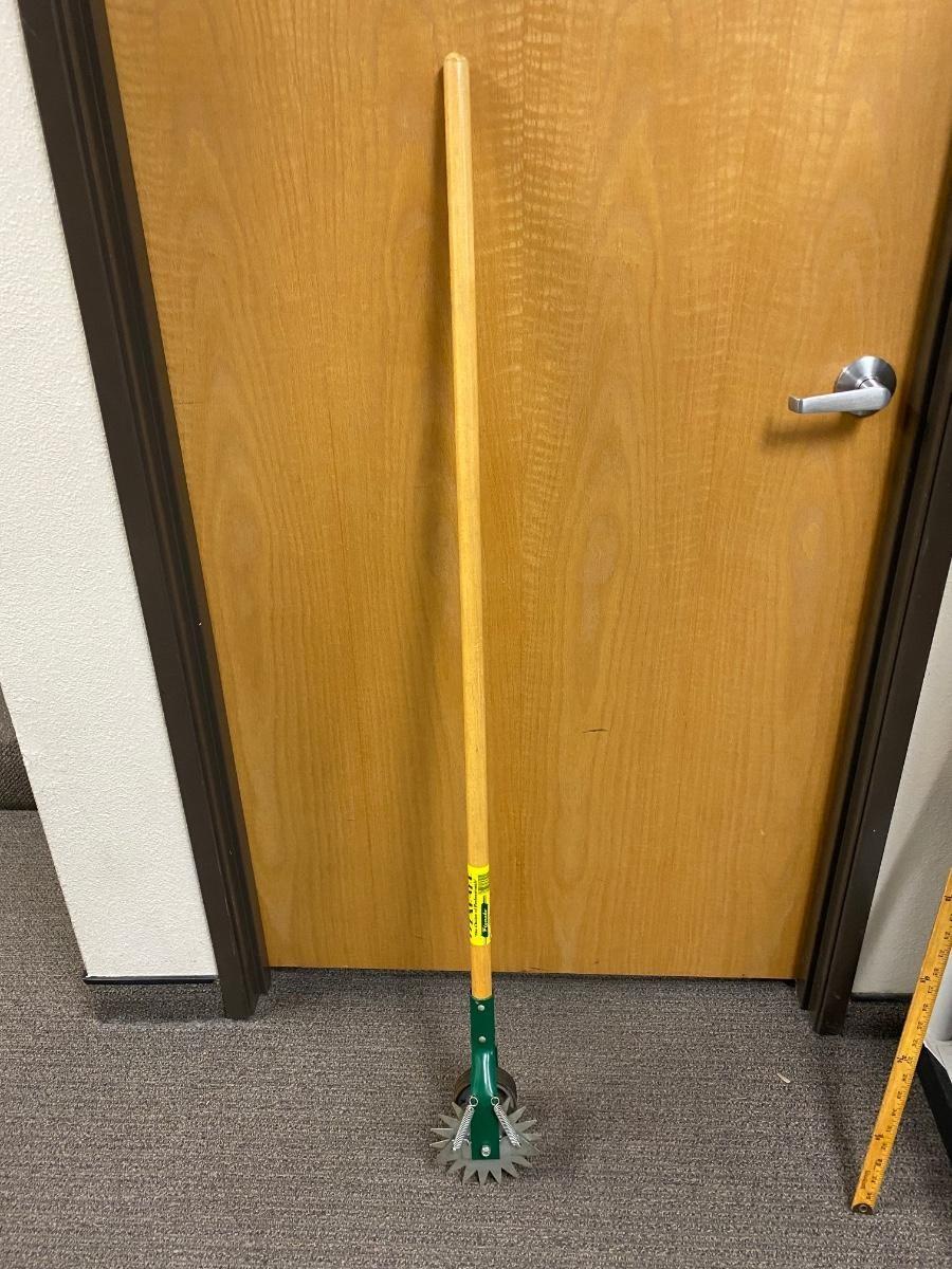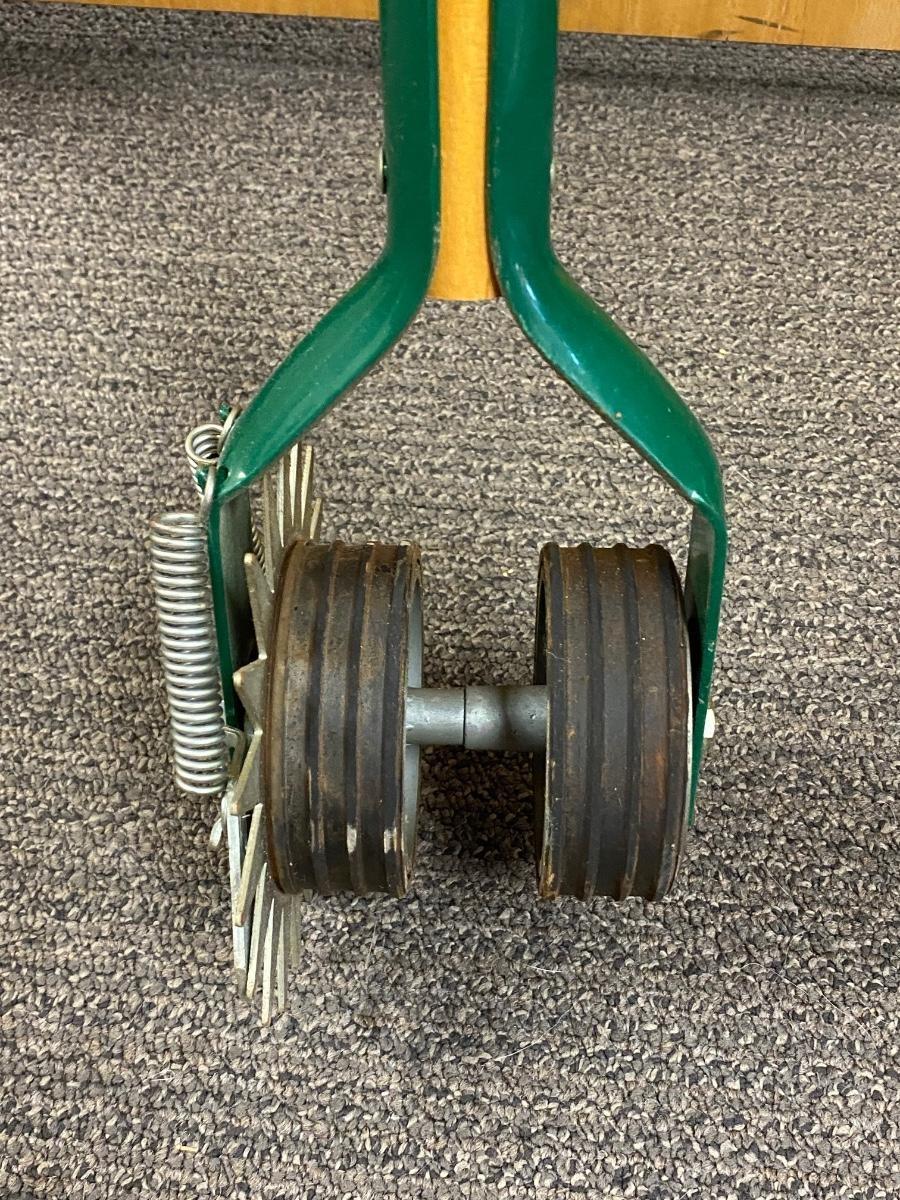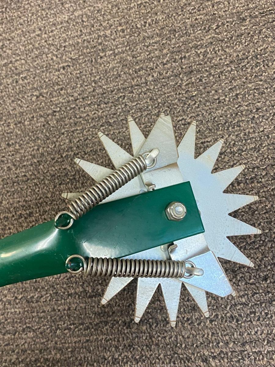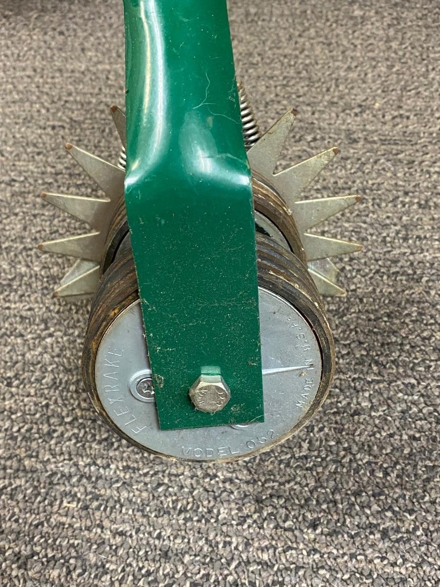 Manual lawn edger from Flexrake. Rolls smoothly. In good condition.