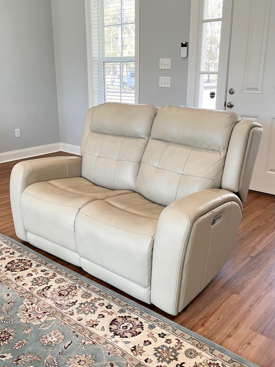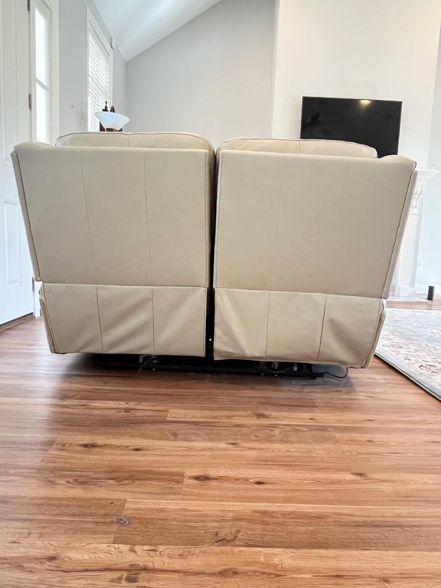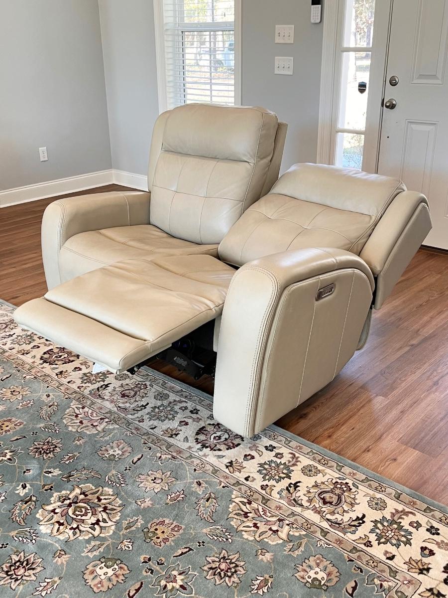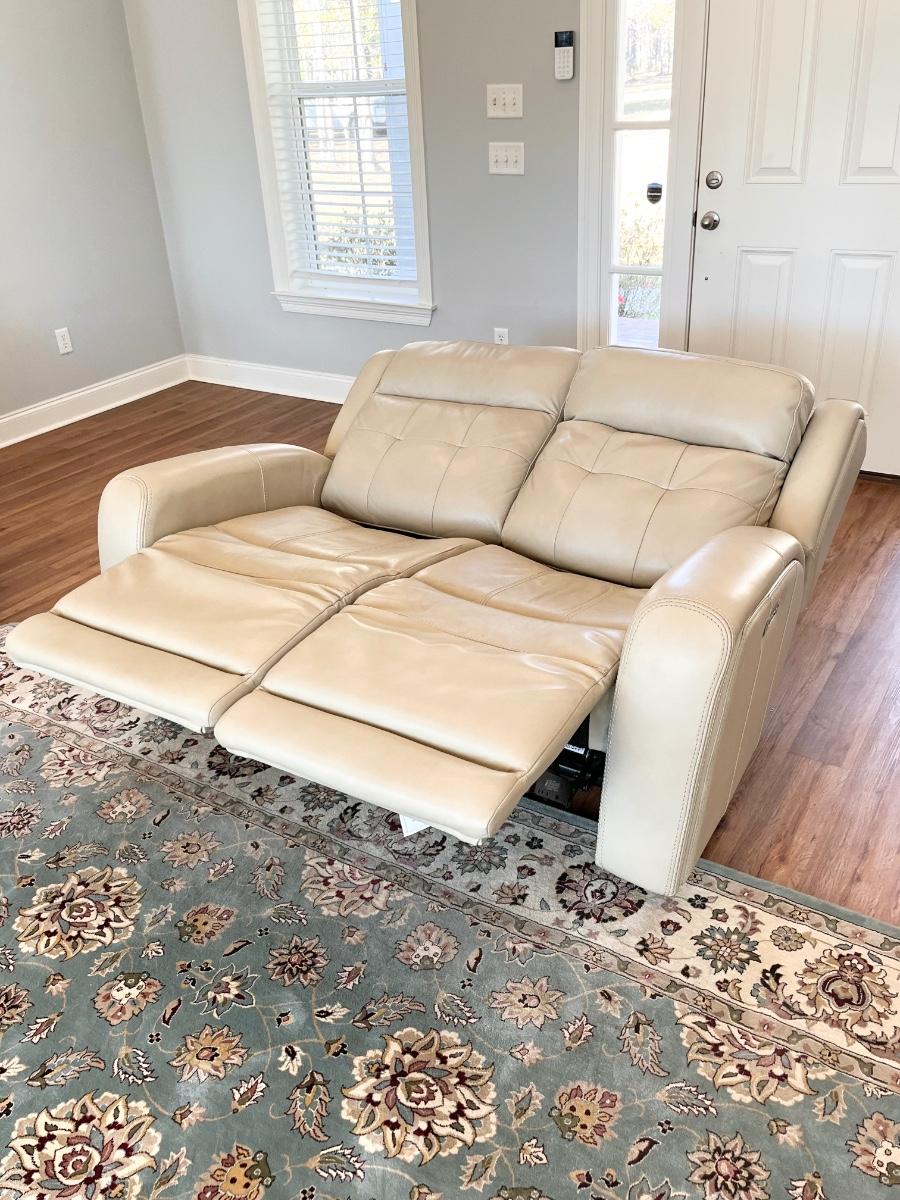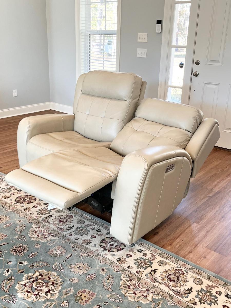 FLEXSTEEL ~ Grant Collection ~ Beige Leather Power Reclining Loveseat With Power Headrest & USB Ports
