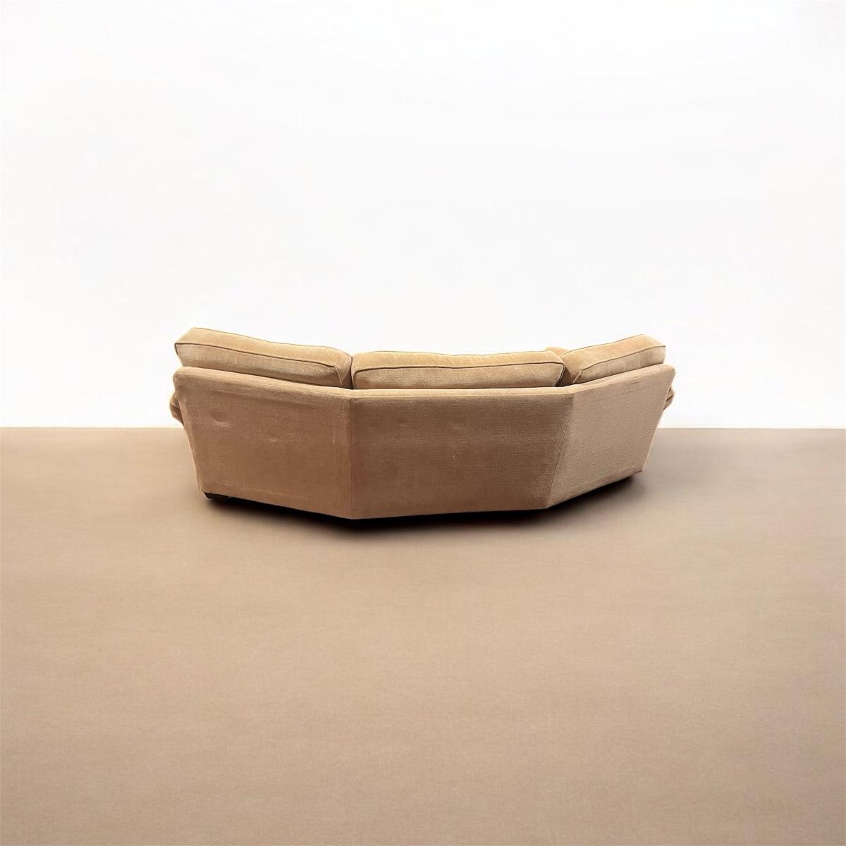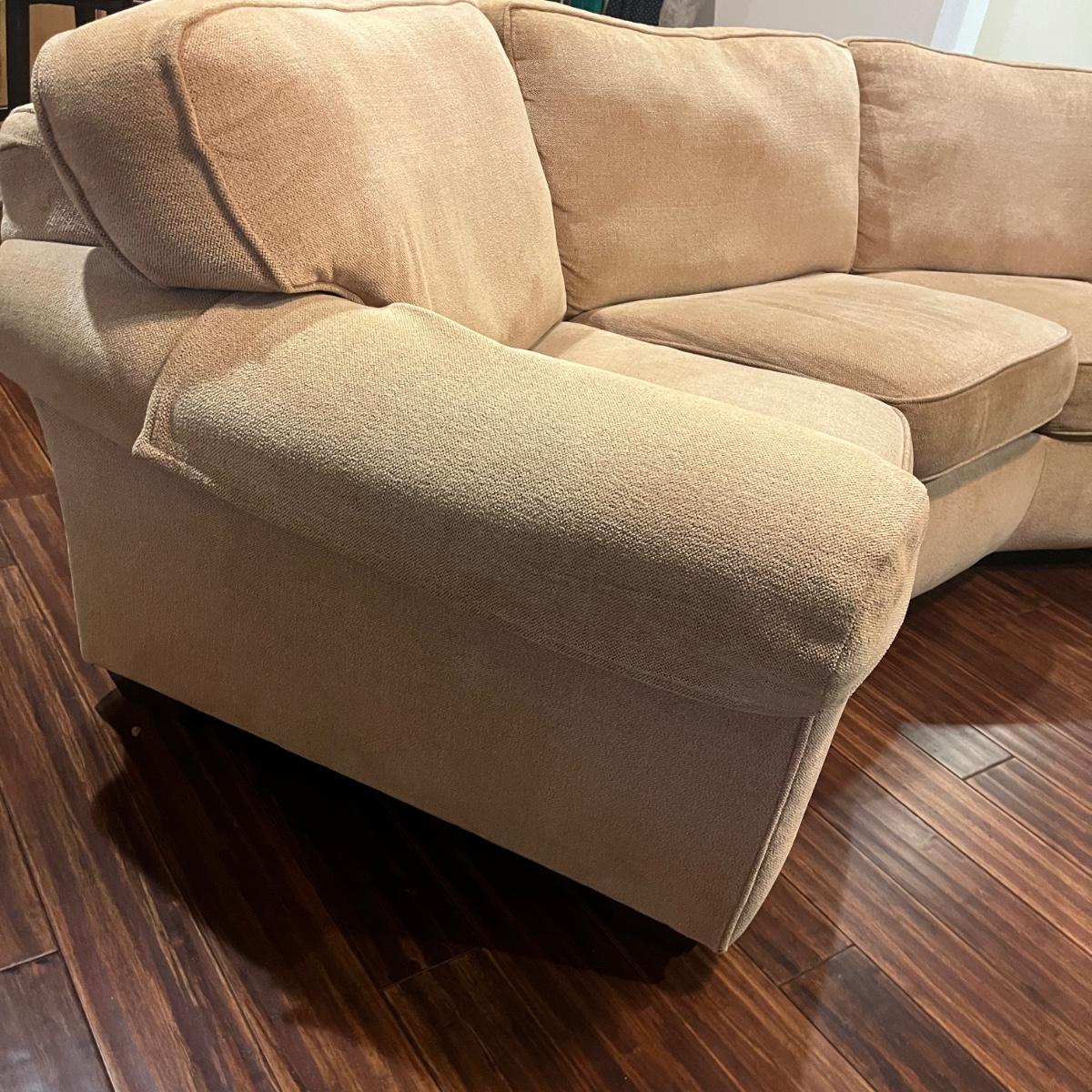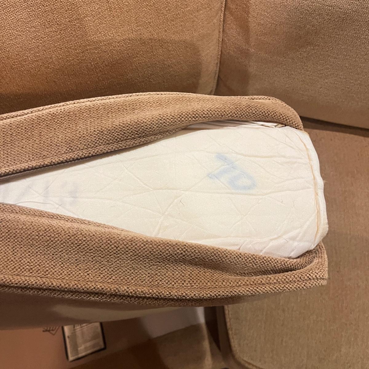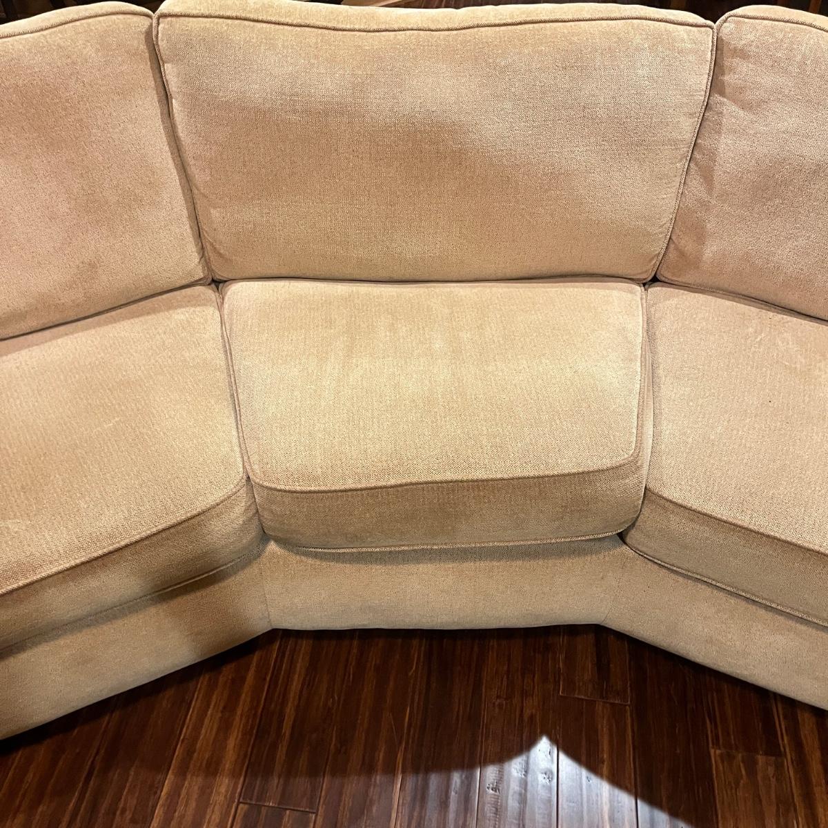 Lot includes a fabric Flexsteel wedge sofa with two matching arm covers. Sofa measures 98” x 36” x 33”H with a 18”seat height.