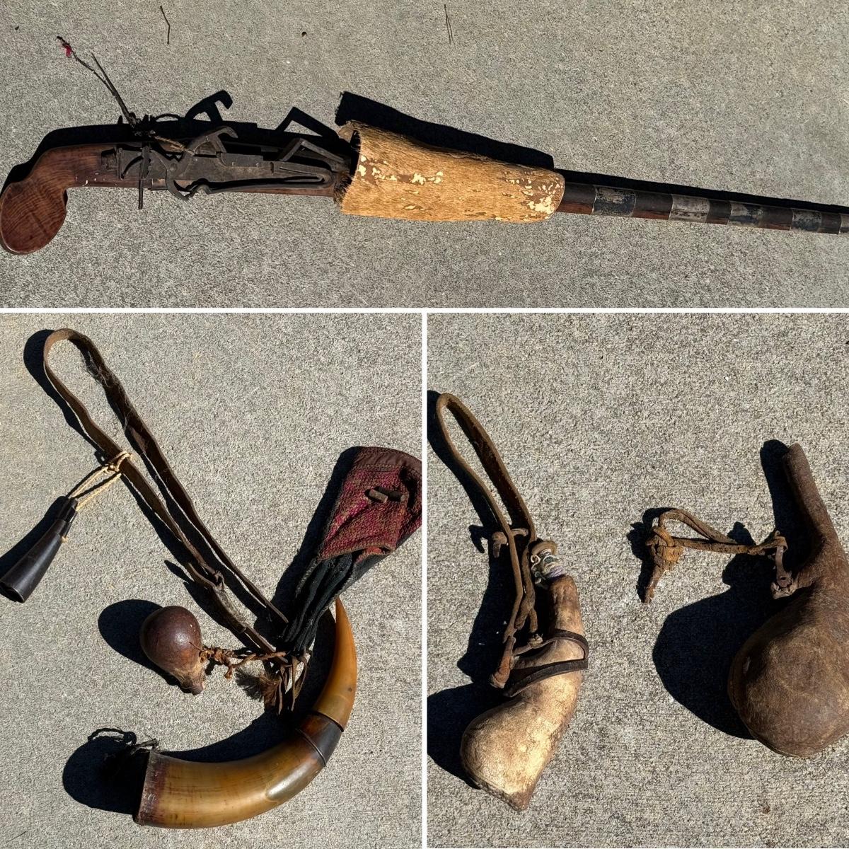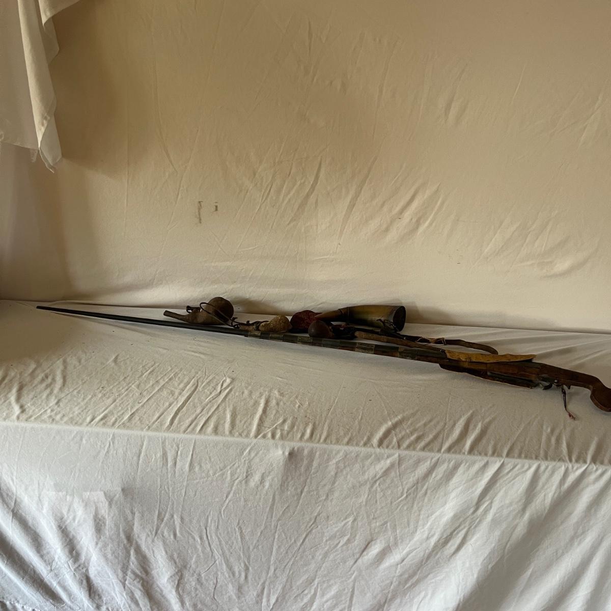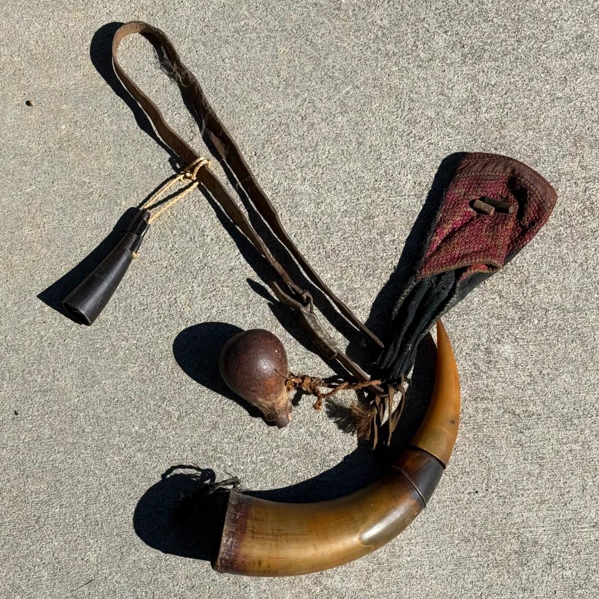 Antique Hmong Flintlock Rifle with Powder Horn & More (BS-MG)