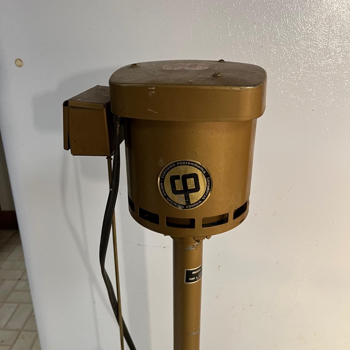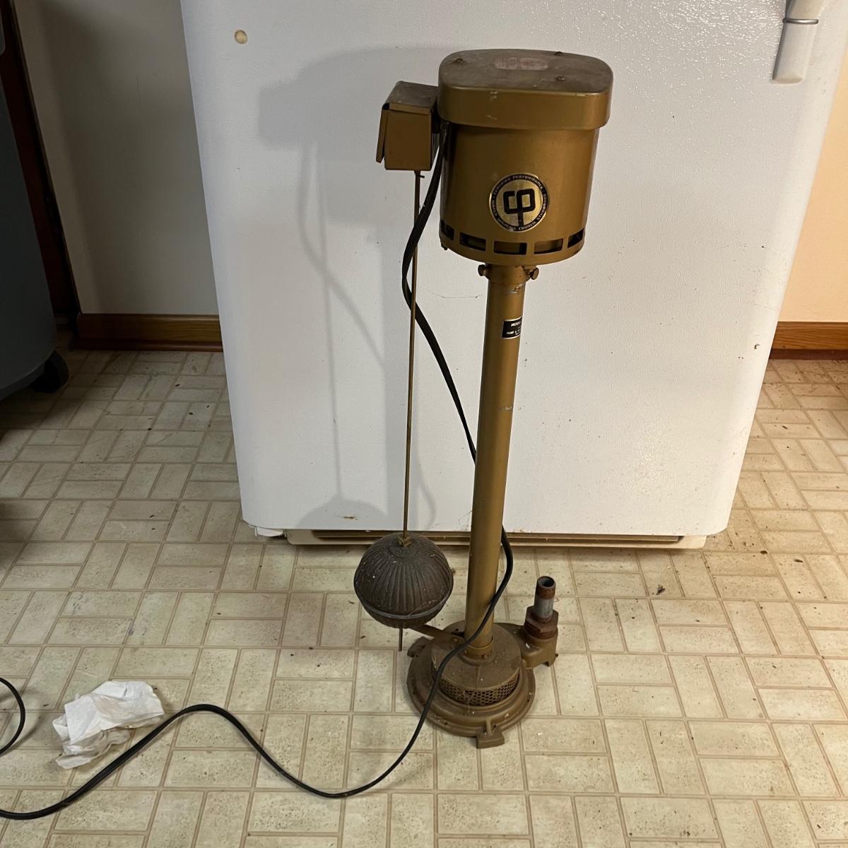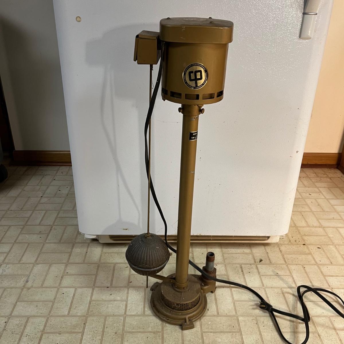 Lot includes a Flint & Walling sump pump with General Electric motor. Pump powered on when plugged in.