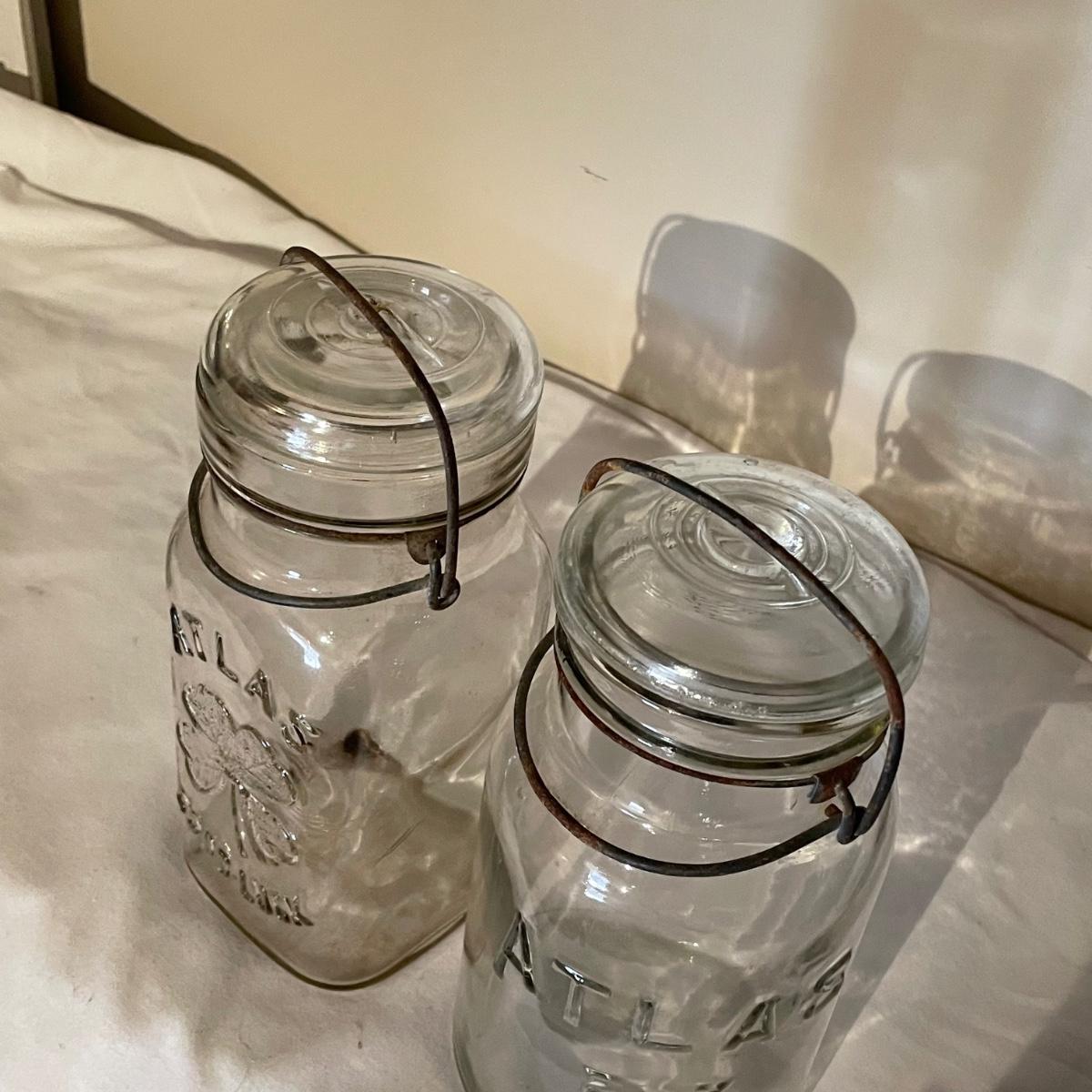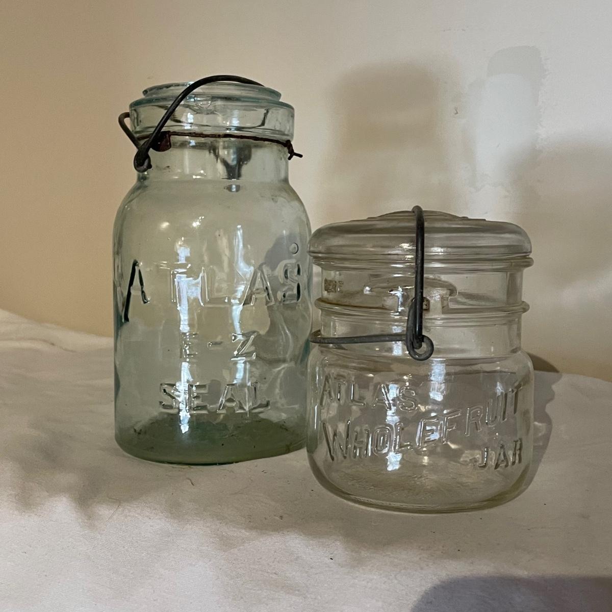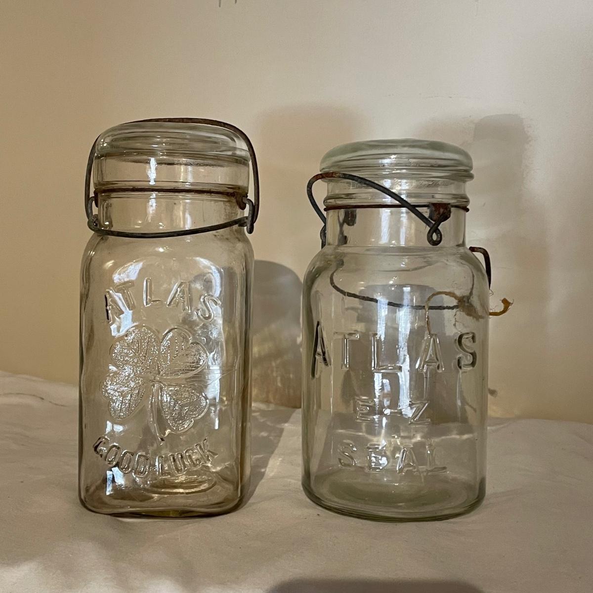 Eleven jars in this lot that includes Ball, Atlas and Masons. Many have glass tops and flip top lids, see images.