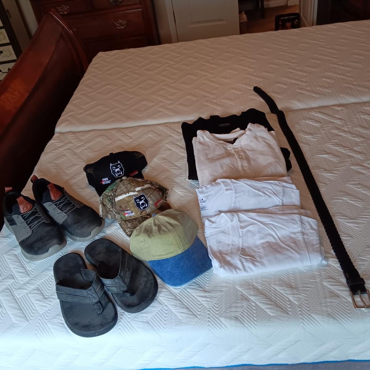 FLOJOS AND SKECHERS MEN'S SHOES, BALL CAPS AND XL TSHIRTS