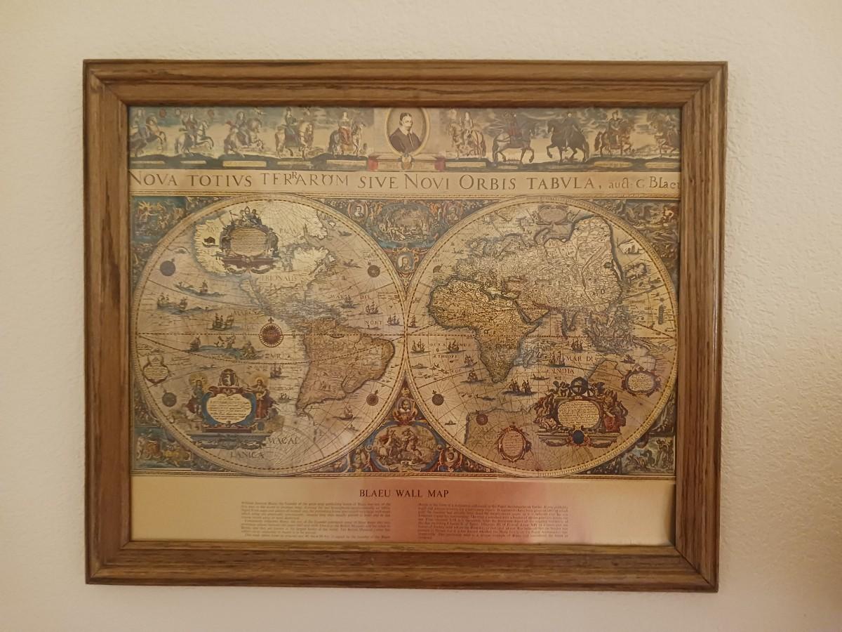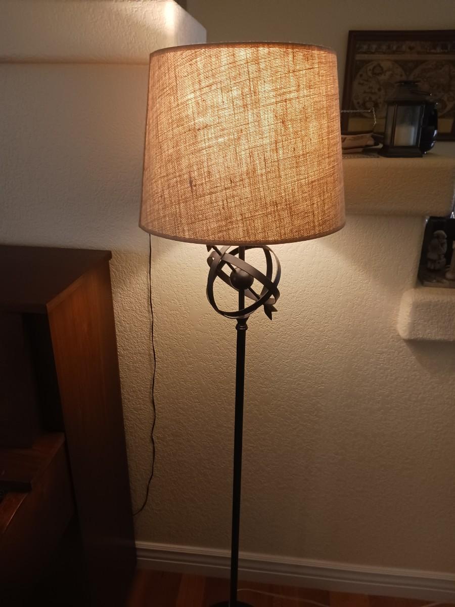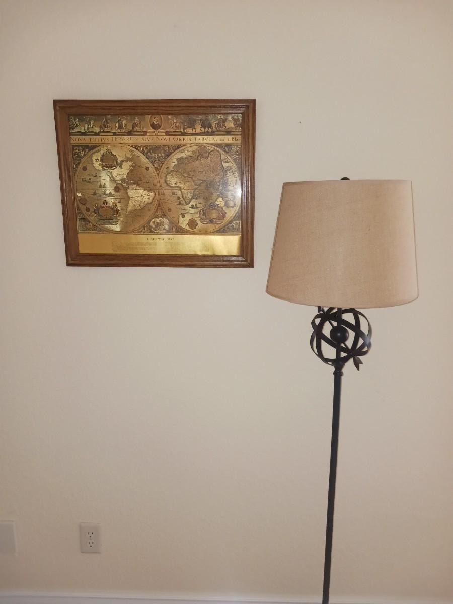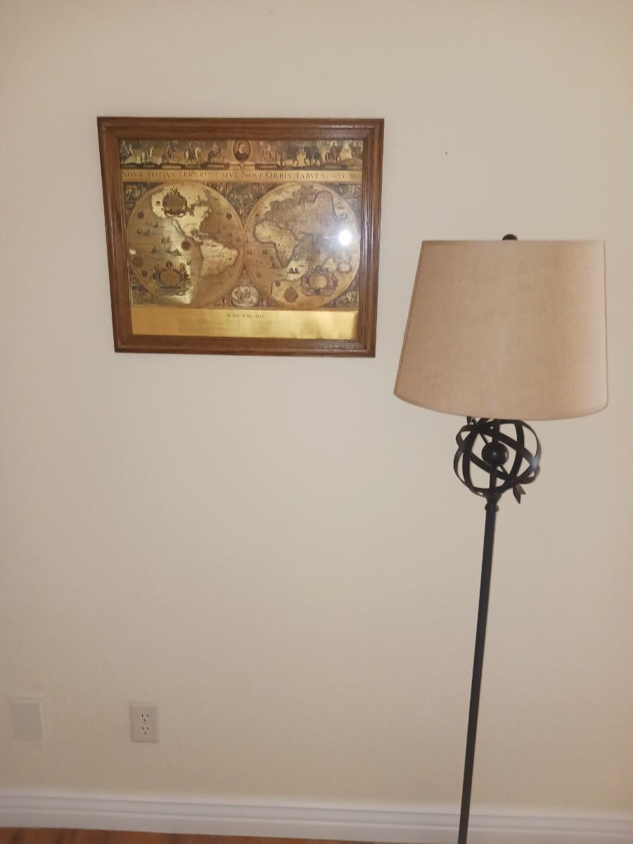FLOOR LAMP AND FRAMED WORLD MAP