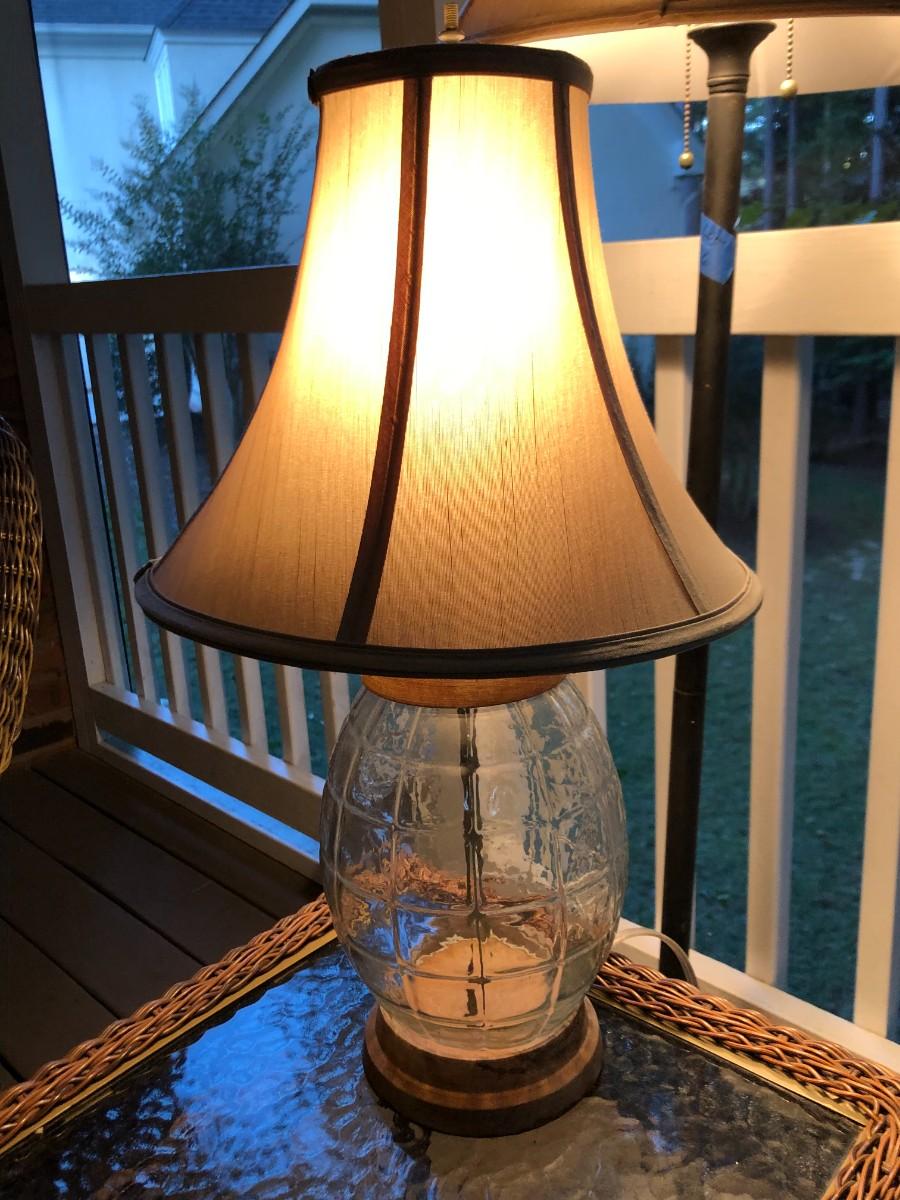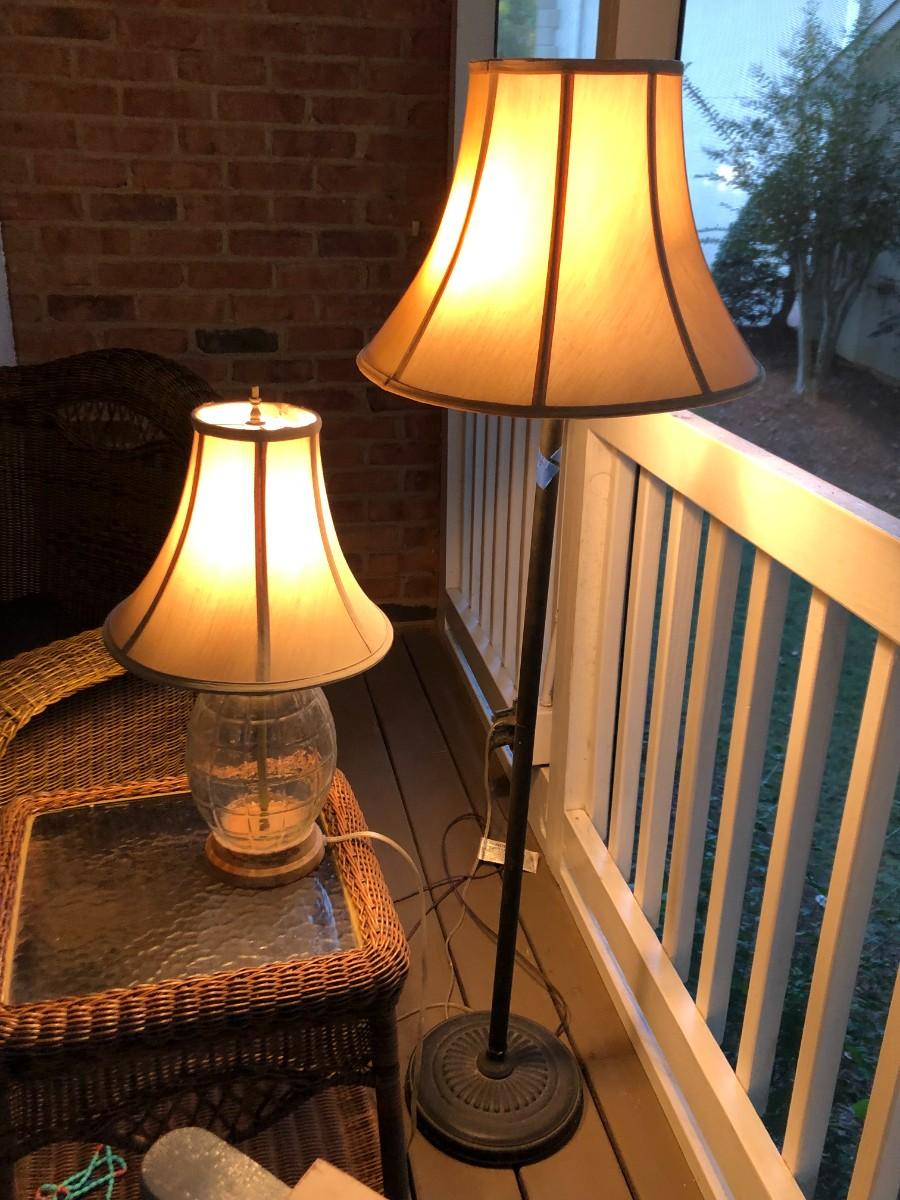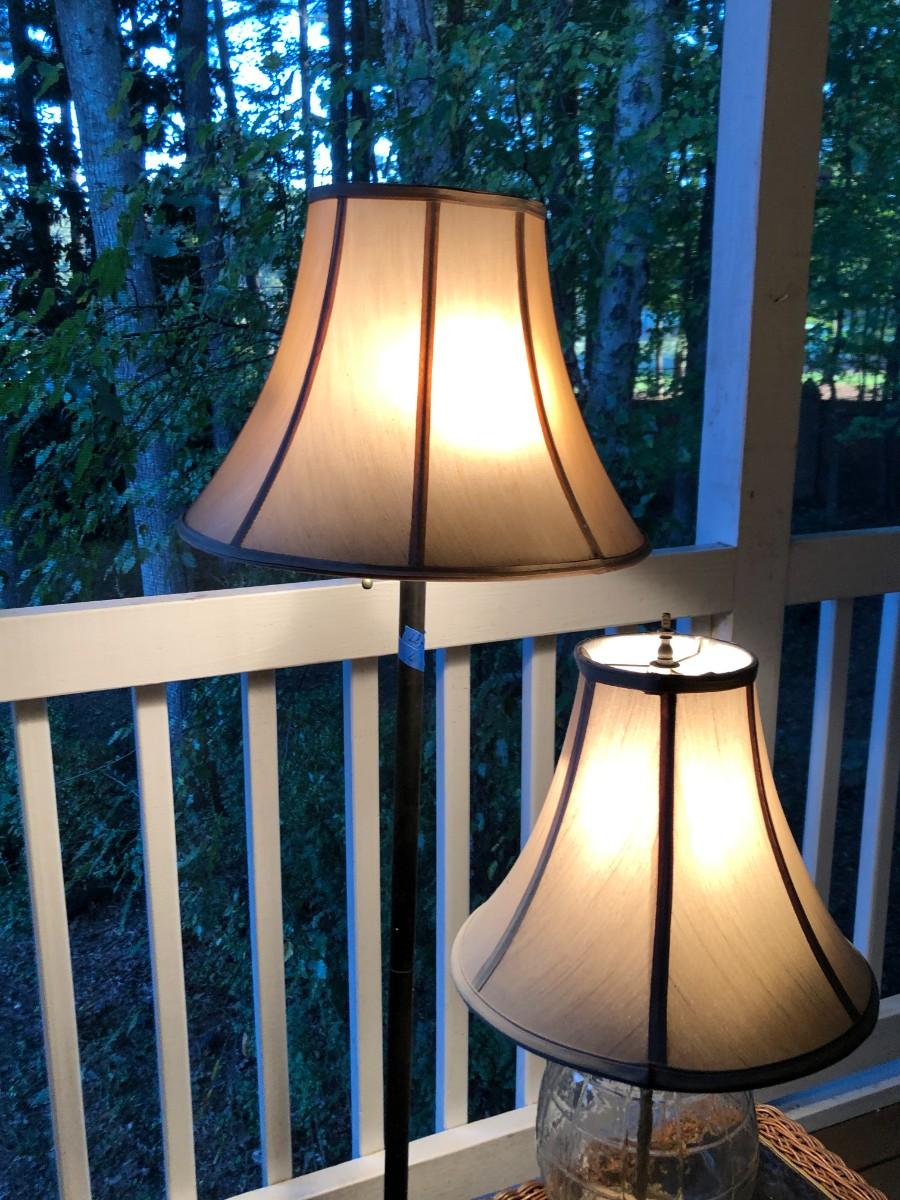 Floor lamp is 54"H and shade is 12 /12"H. Table lamp is 21"H and shade is 9 1/2"H