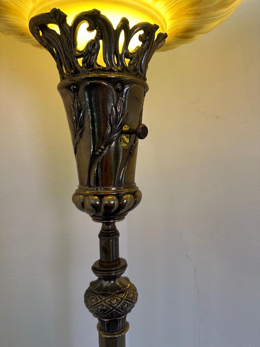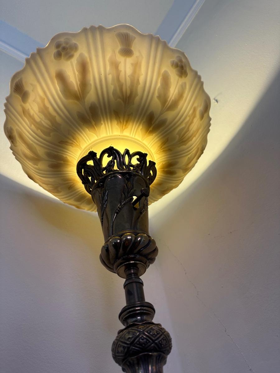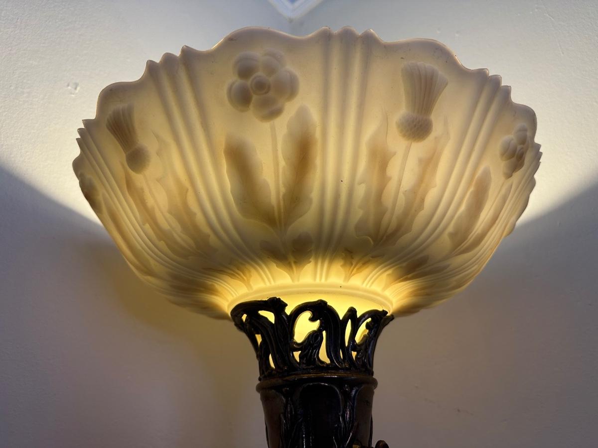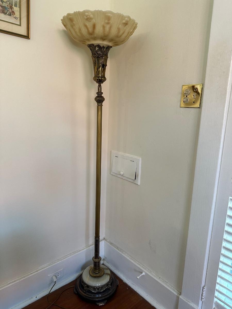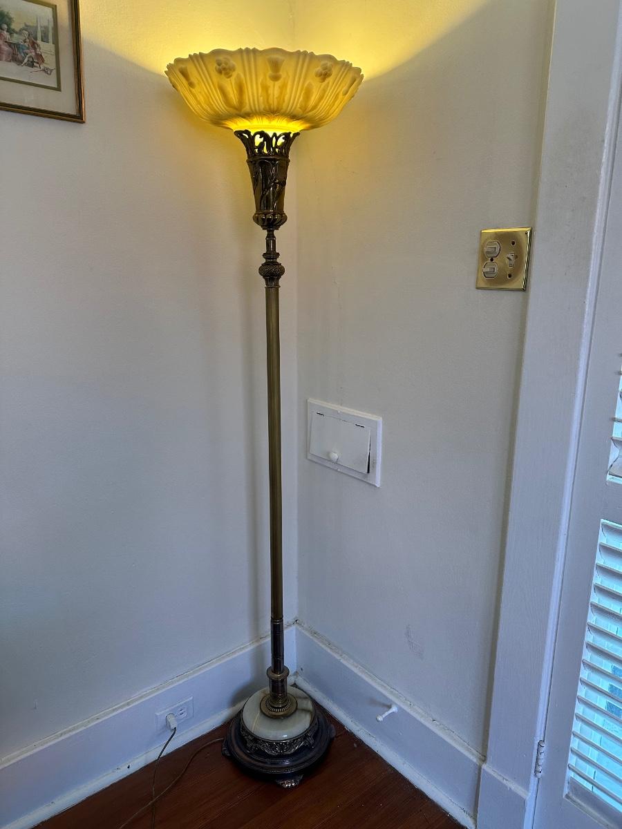 Floor Lamp with Glass Shade and Beautiful Stone (See Details)