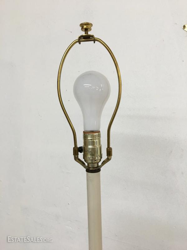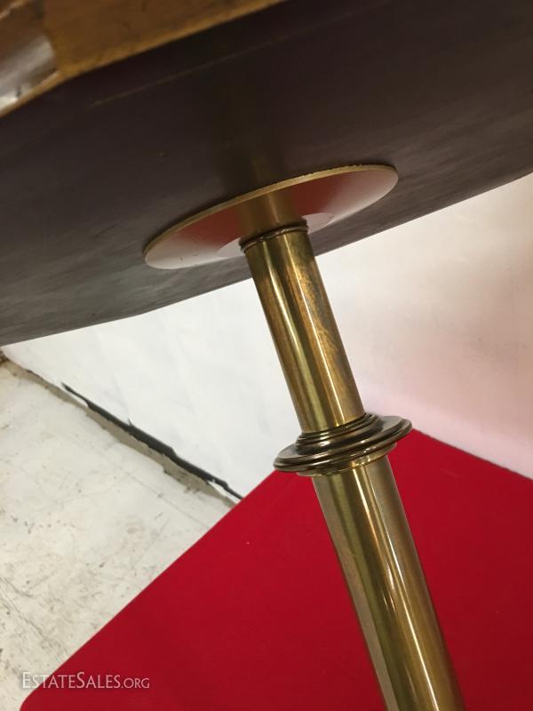 Lamp is in working condition, in good overall condition. Table is 15" by 18", lamp is 54" from floor to top of shade.