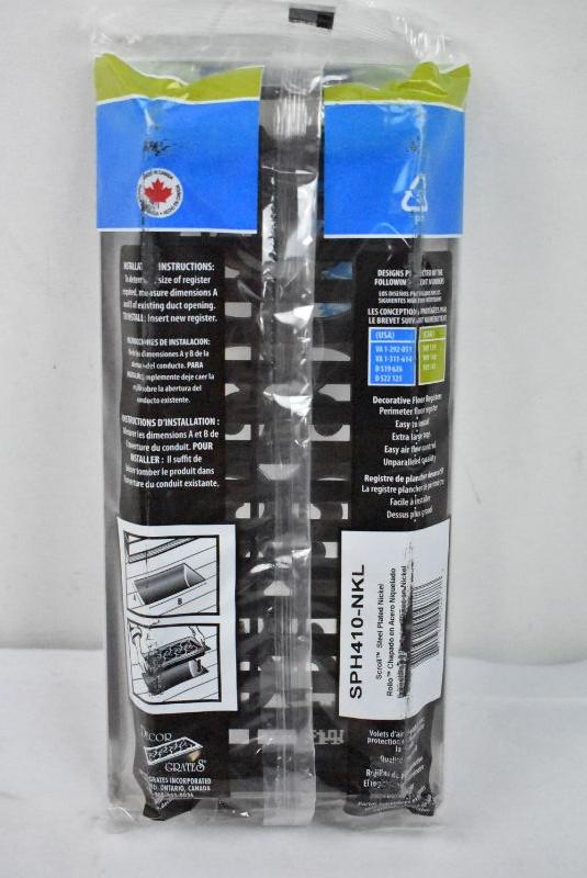 Floor Register 4" x 10" Scroll Steel Plated Nickel - New