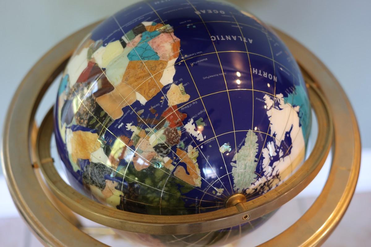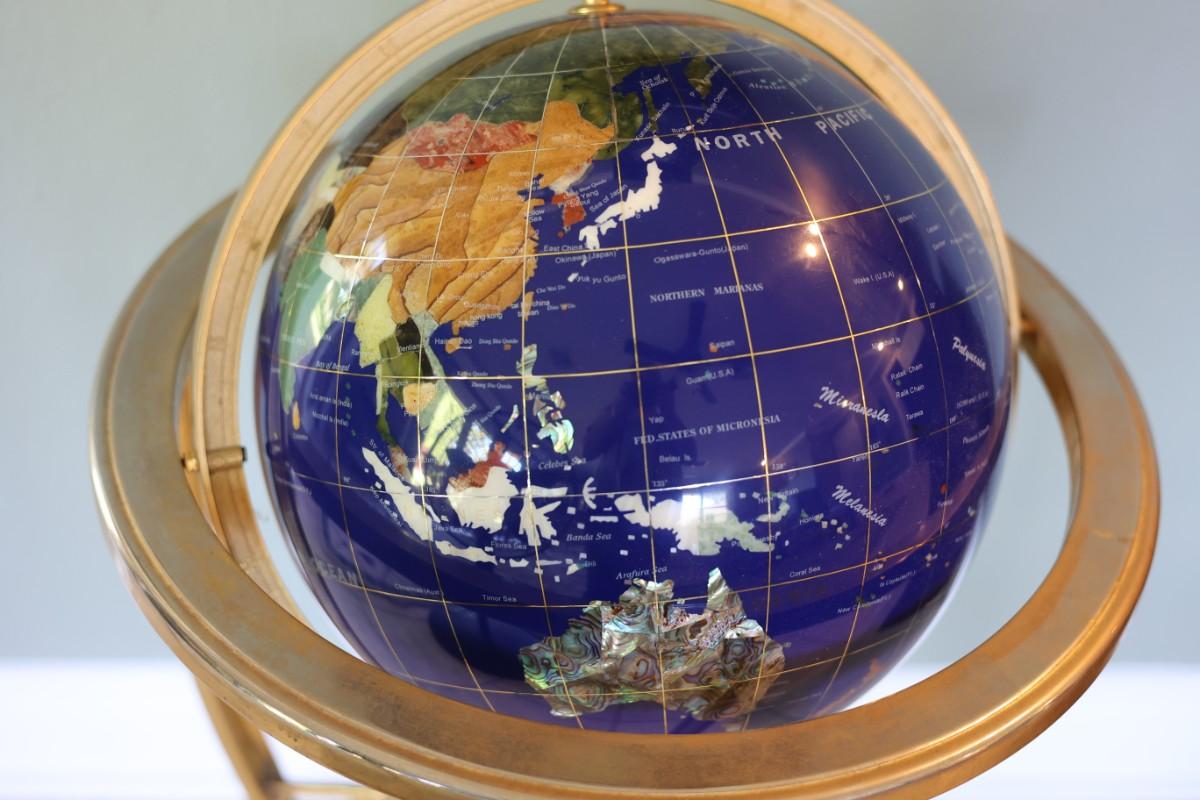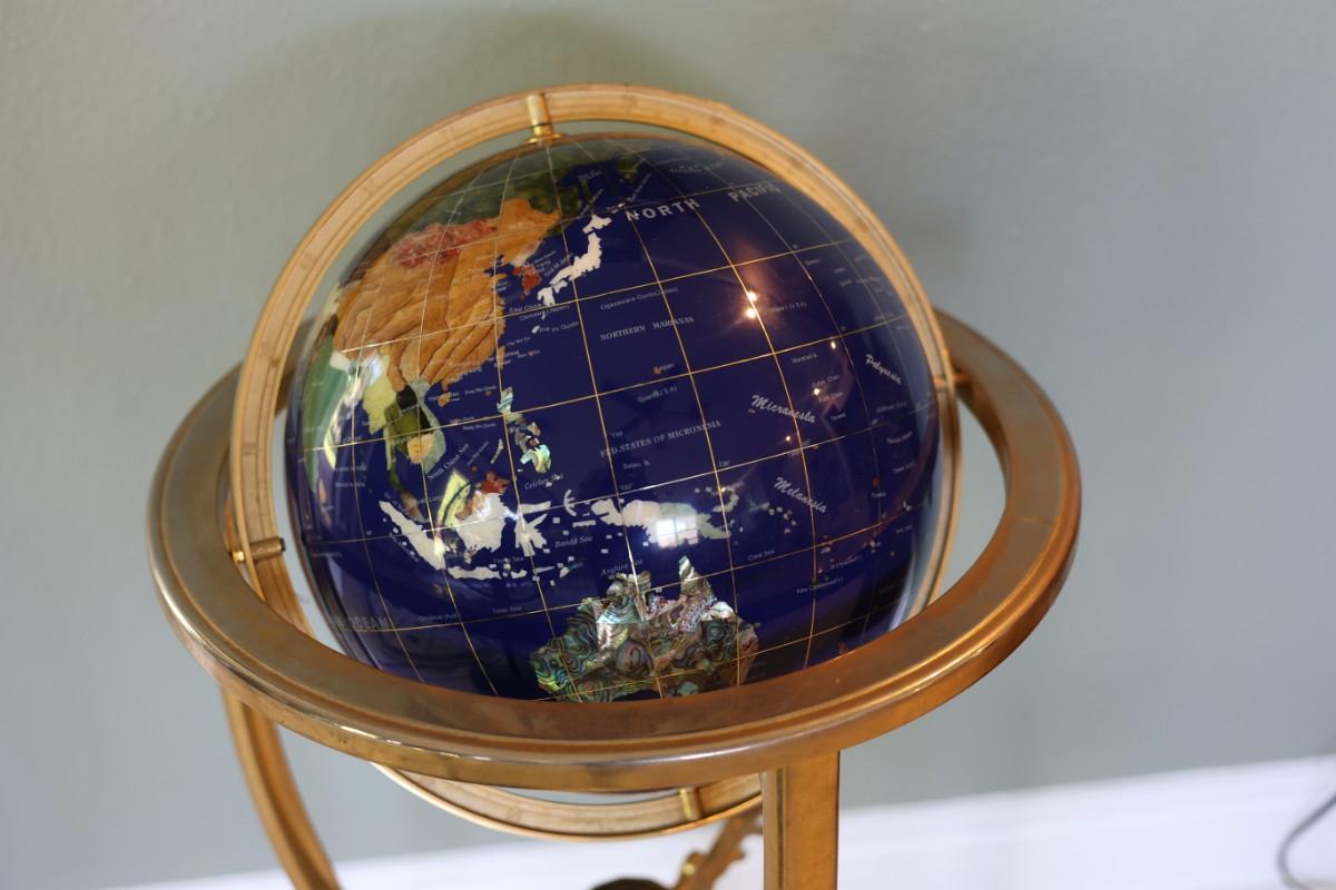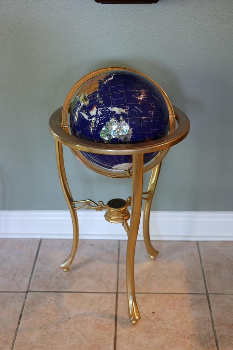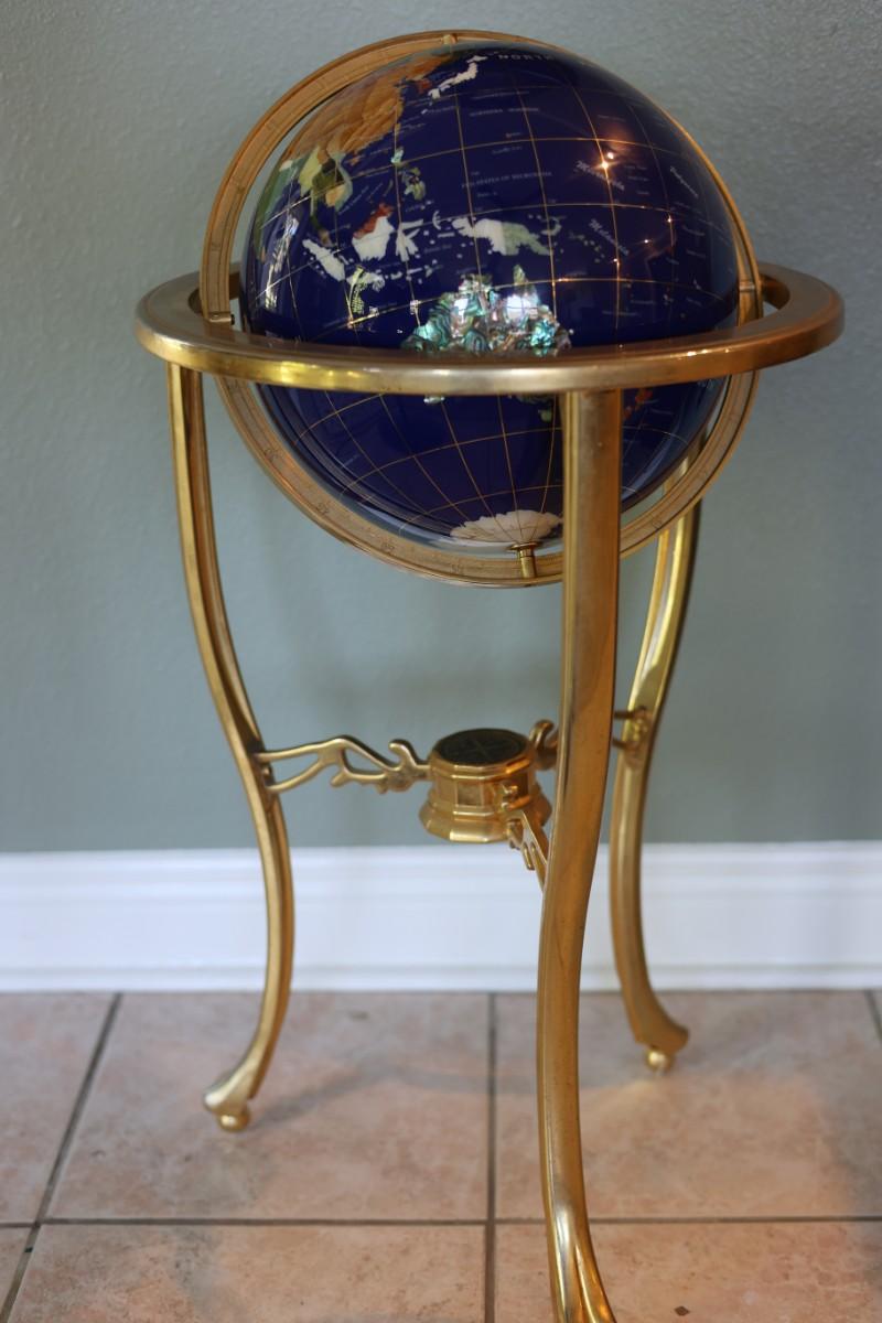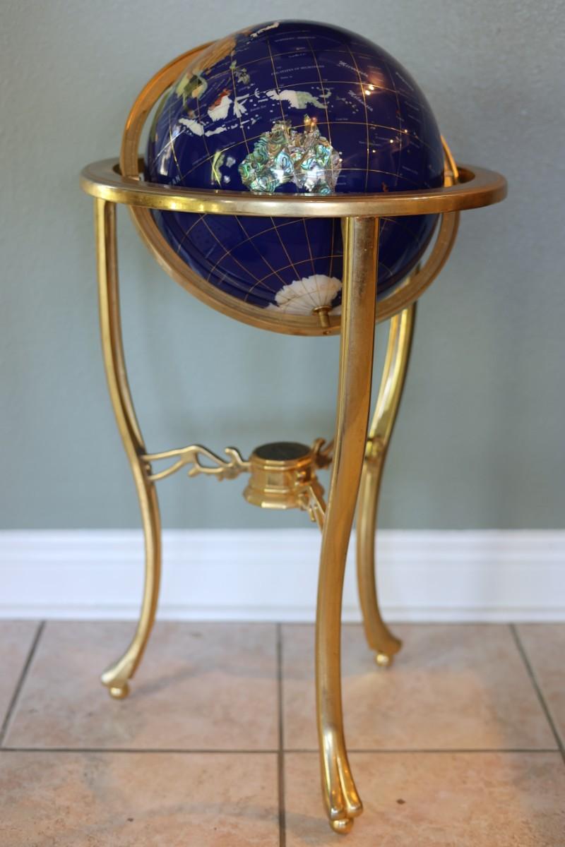 Floor Standing Blue Lapis Gemstone World Globe Gold Tripod
