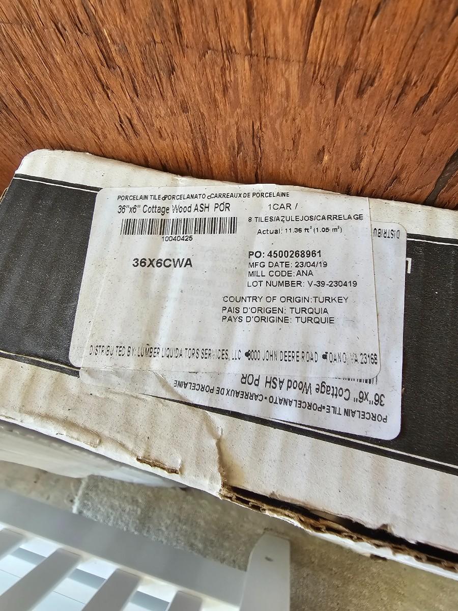 36"x6" Cottage Wood Ash floor tiles, new in box, (9 boxes)