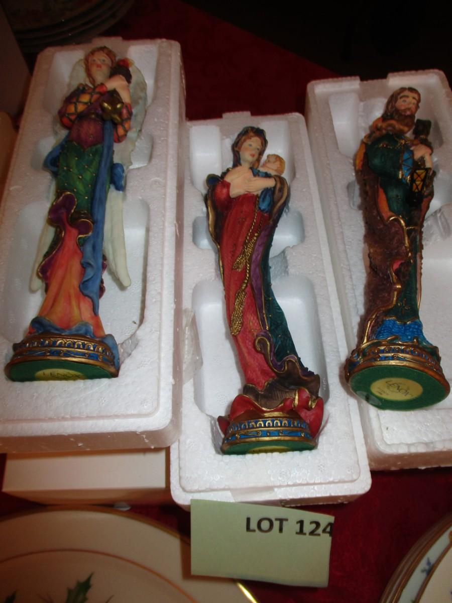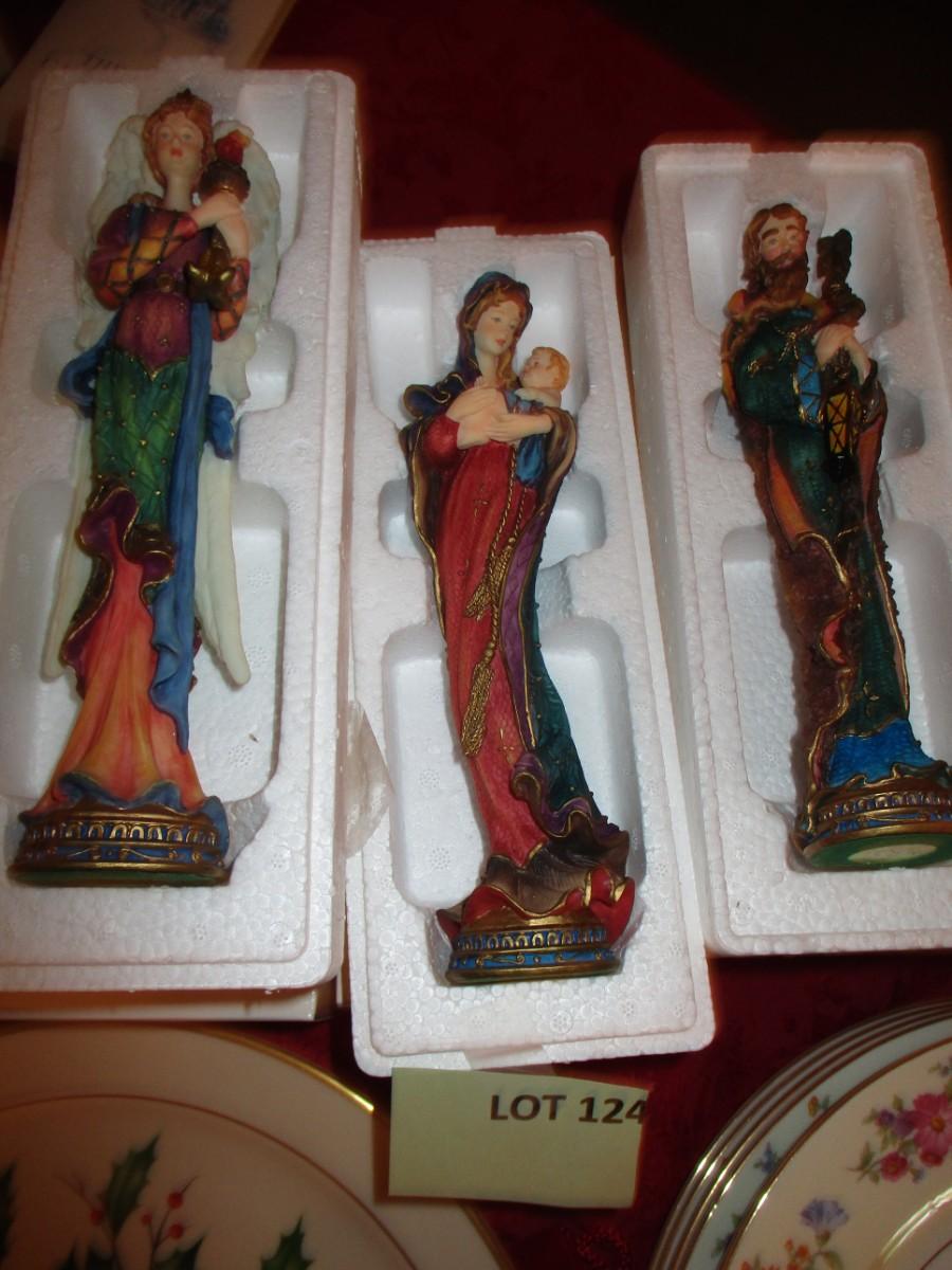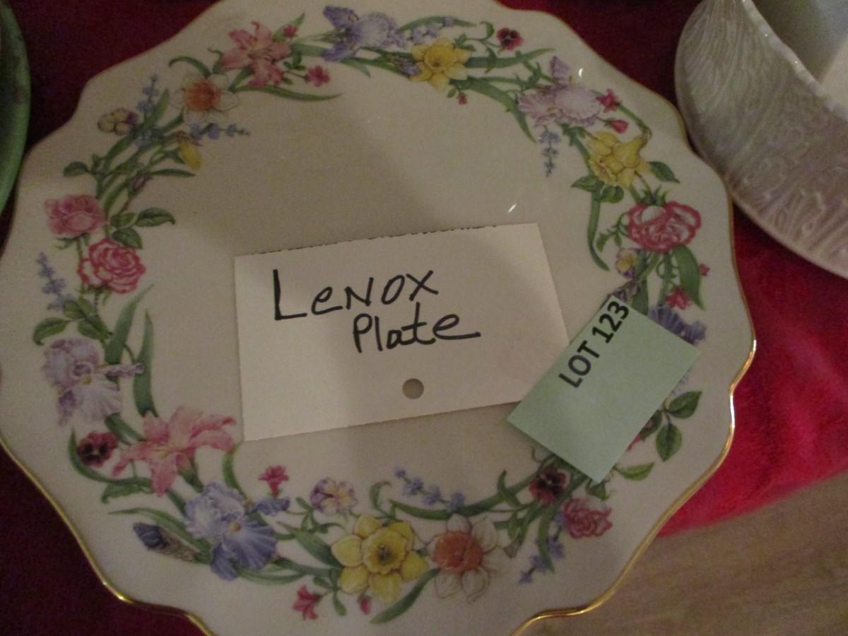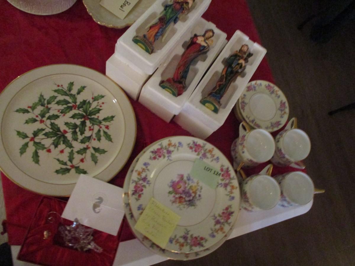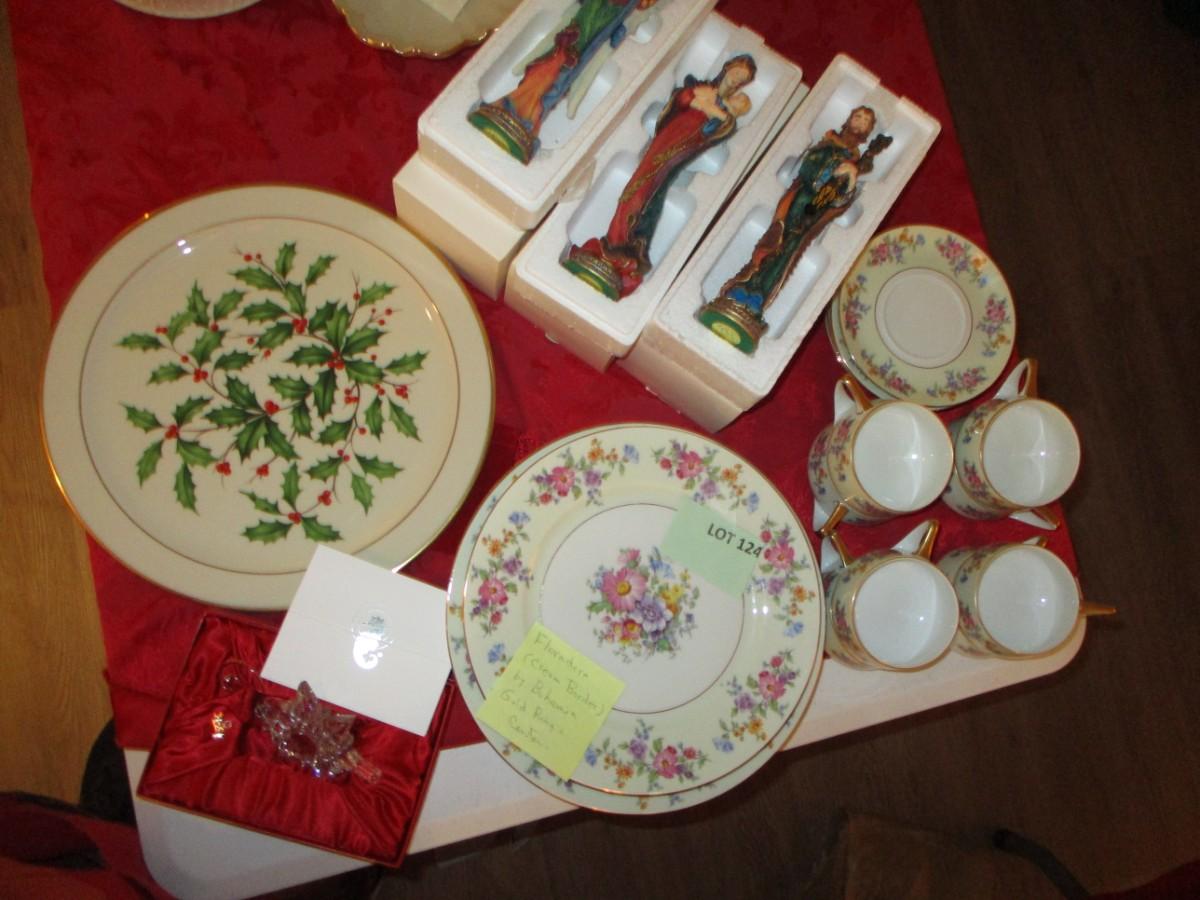 China, 3 Lenox Figurines, Glass Lenox ornament. Holiday plate
