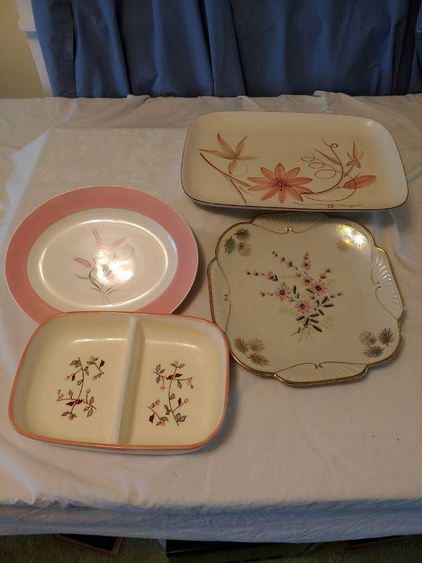 Please Don't Let The Sales Tax etc Scare You Away; There Is None; Can Pay In Cash. Floral and pink serving plates; made in Germany and USA. Final Estate Sale! Everything Must Go! Rock Bottom Prices!