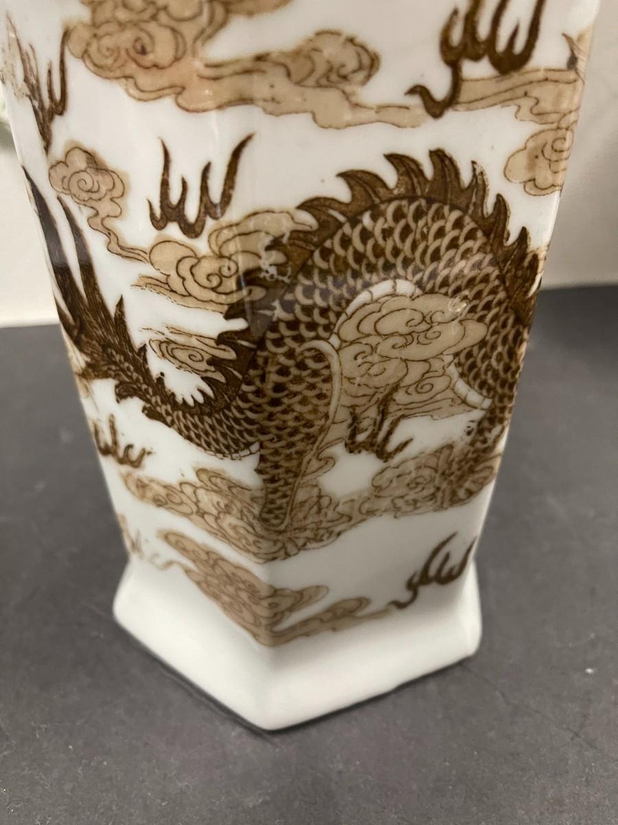 Floral Arrangement in Vintage Brown and White Dragon Chinese Porcelain Vase