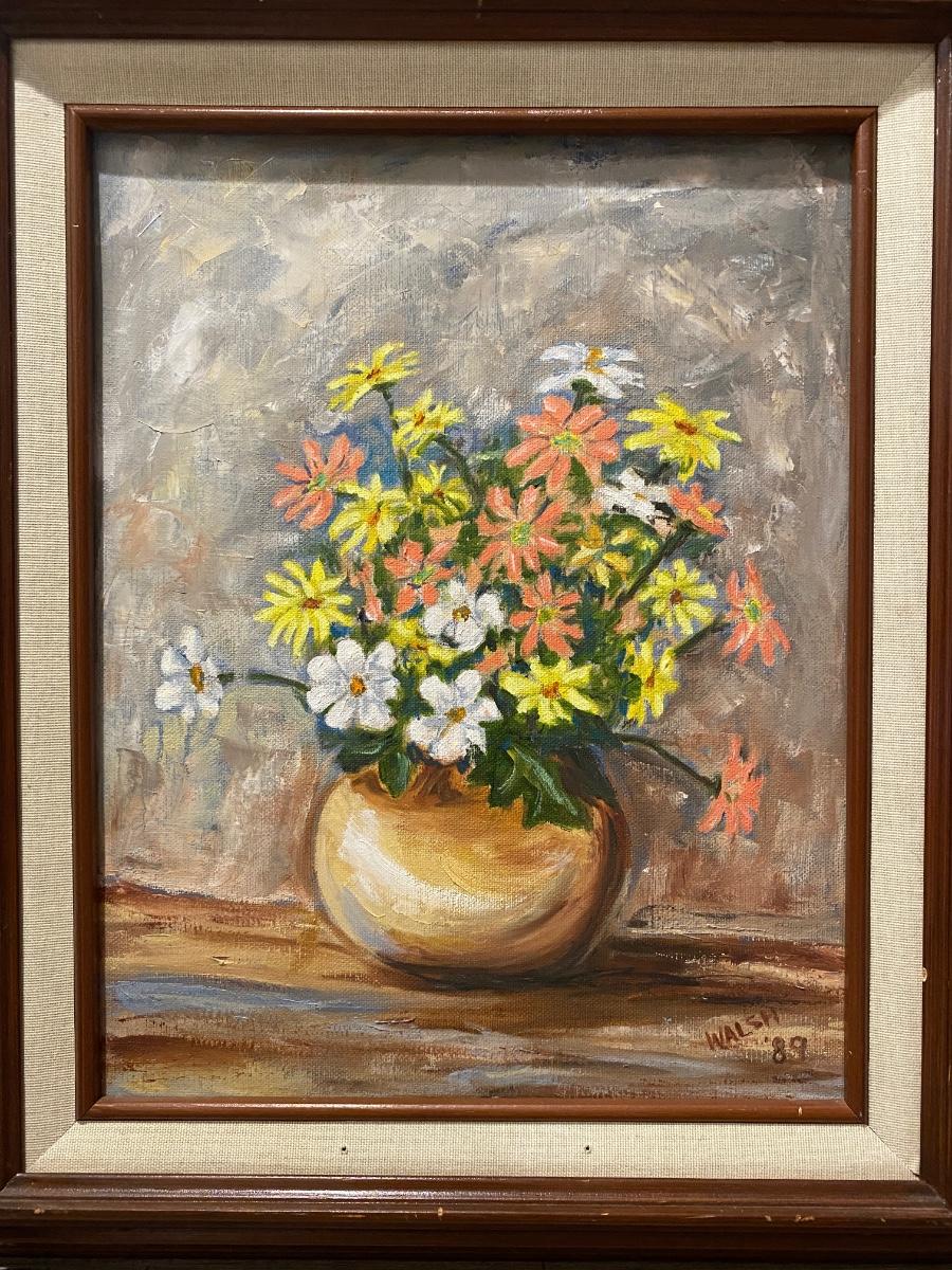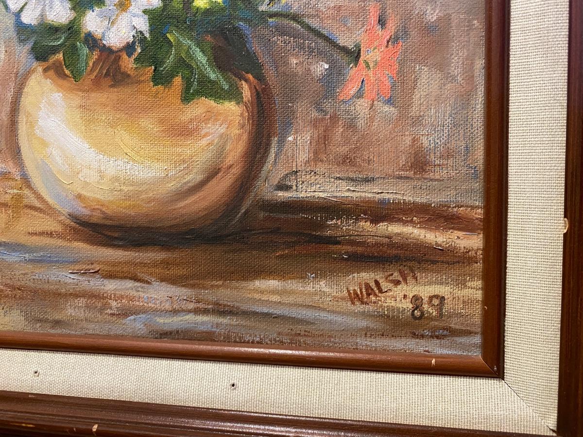 1989 Oil on Canvas, Untitled Floral Art by Dorothy Walsh - 15.5" W x 18.5" T. Signed and Framed