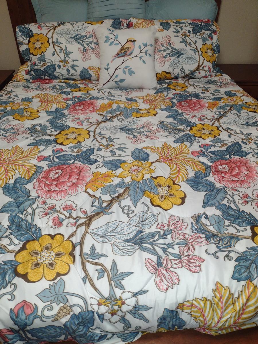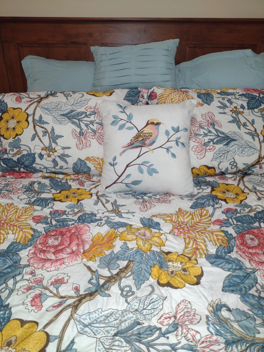Floral Bed Coverlet Set with Shams and Accent Pillow- Queen Size