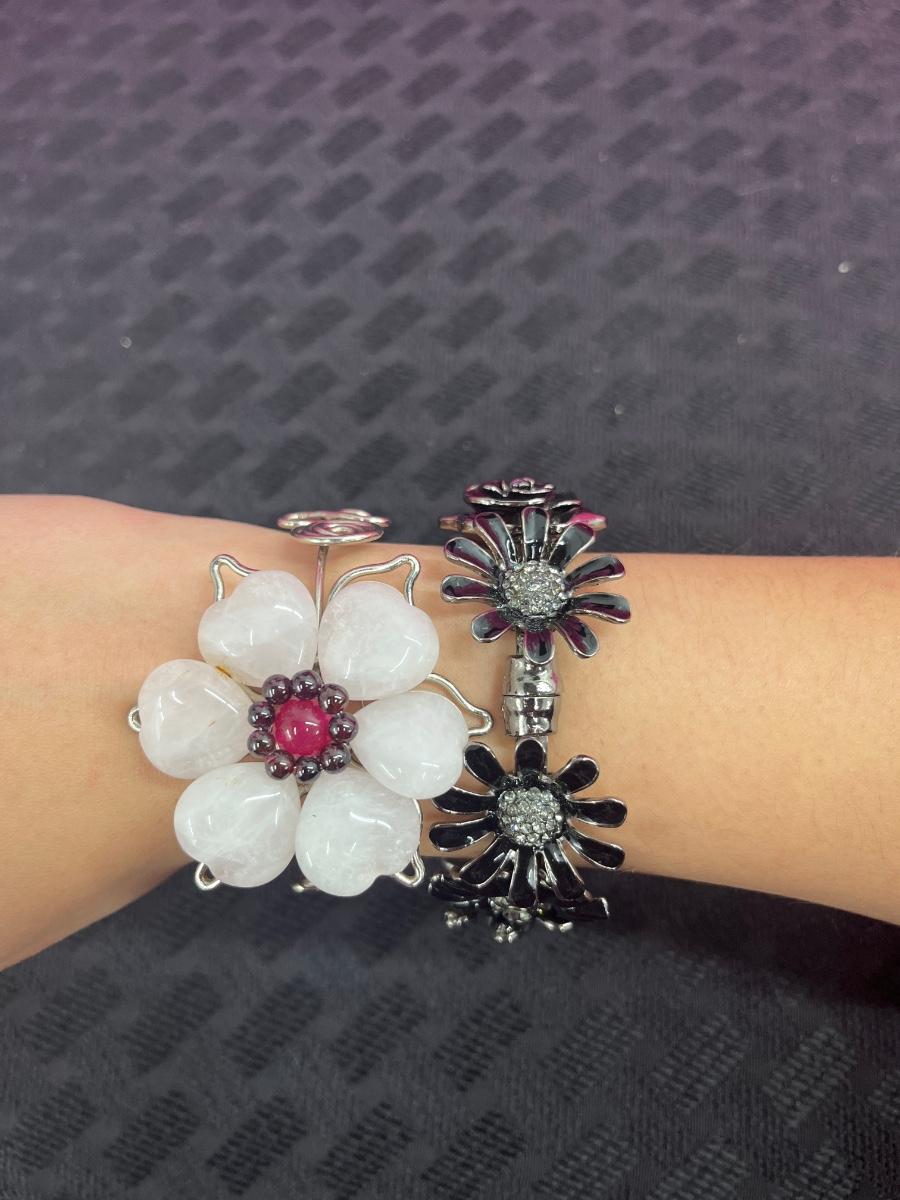 Beautiful black floral bracelet with rhinestones