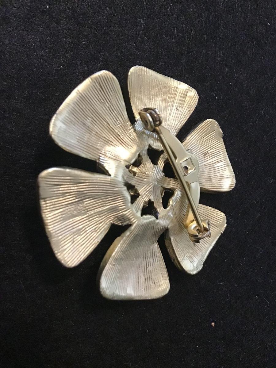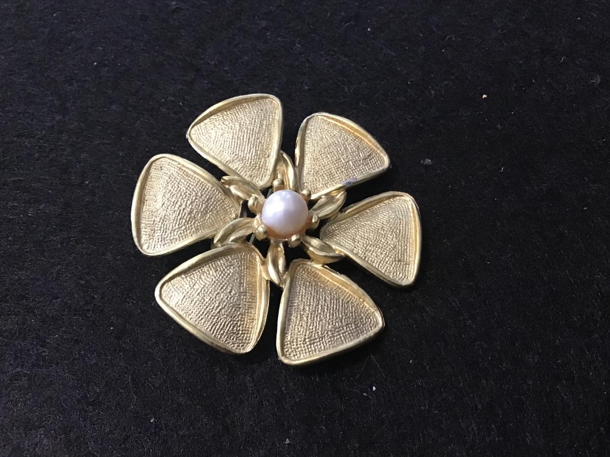 Floral Brooch Pearl Center Vintage