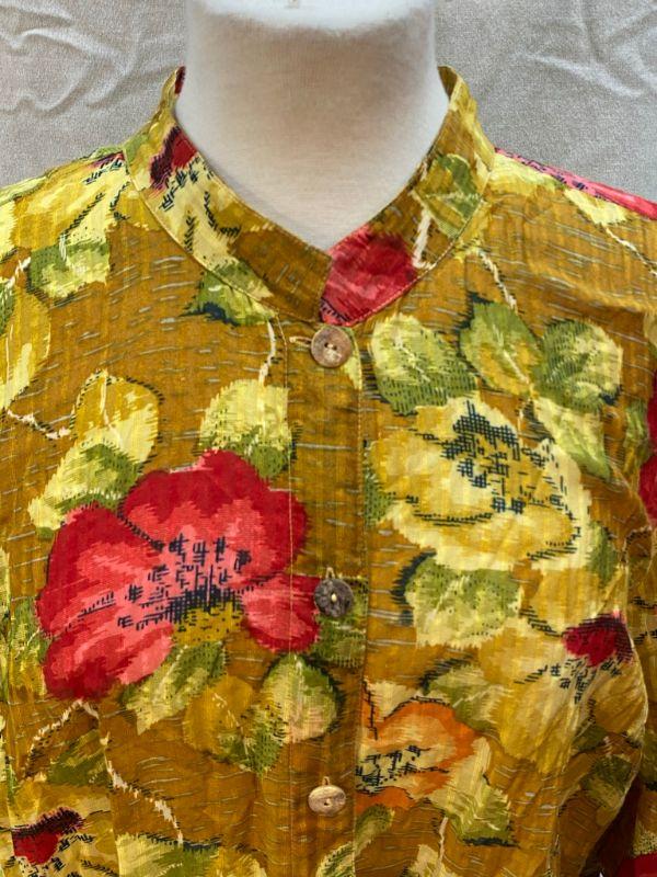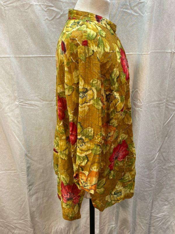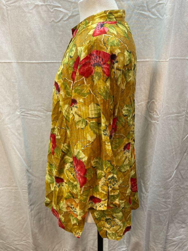 Floral button front blouse by Citron Santa Monica. Shades of yellow with pop of red floral design. Silk cotton blend. Good condition. Size 1X.