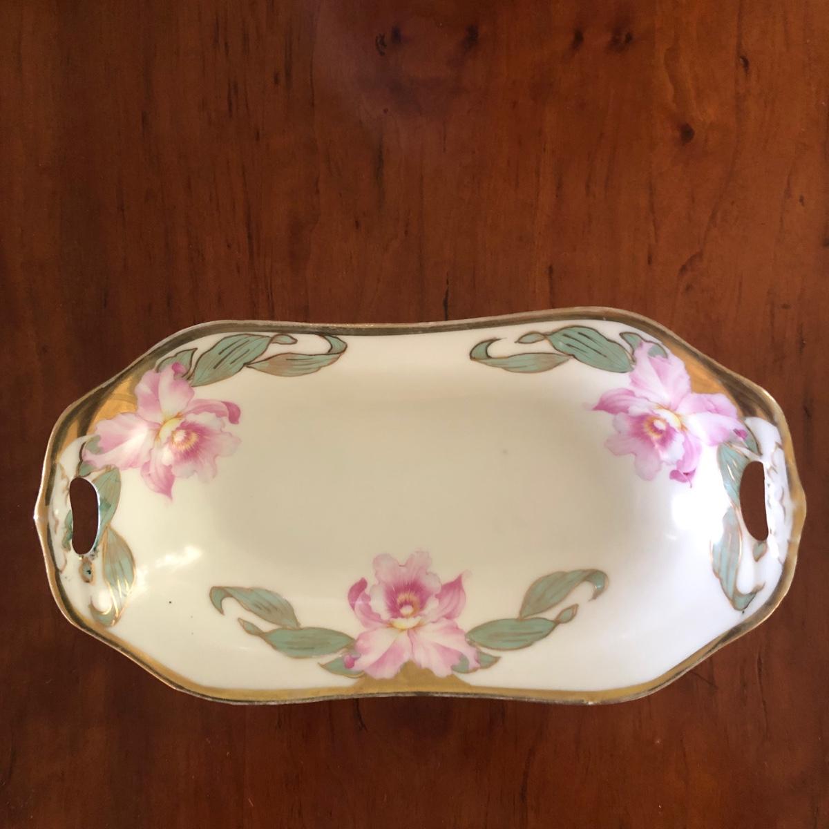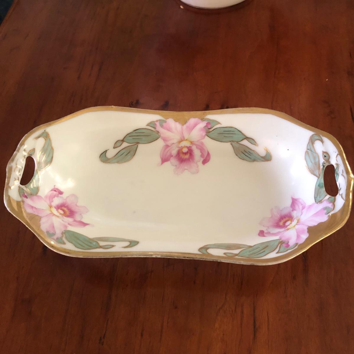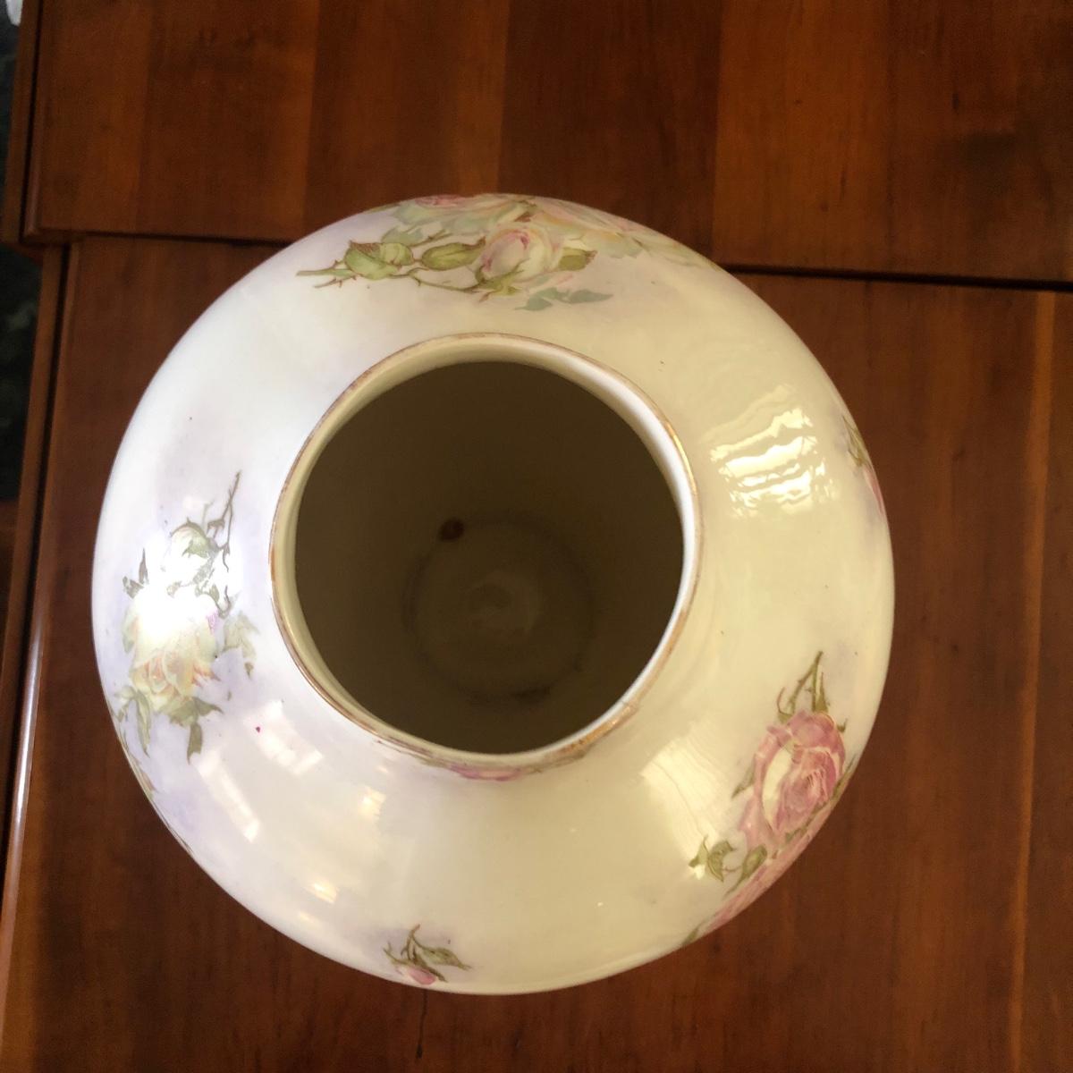 Dimensions for the vase are 8” wide with a 3” mouth and it stands over 10” tall. The butter dish measures 7.5” x 4” x 1.5”. Please note marks on the bottom of each piece of China. Shipping Available.