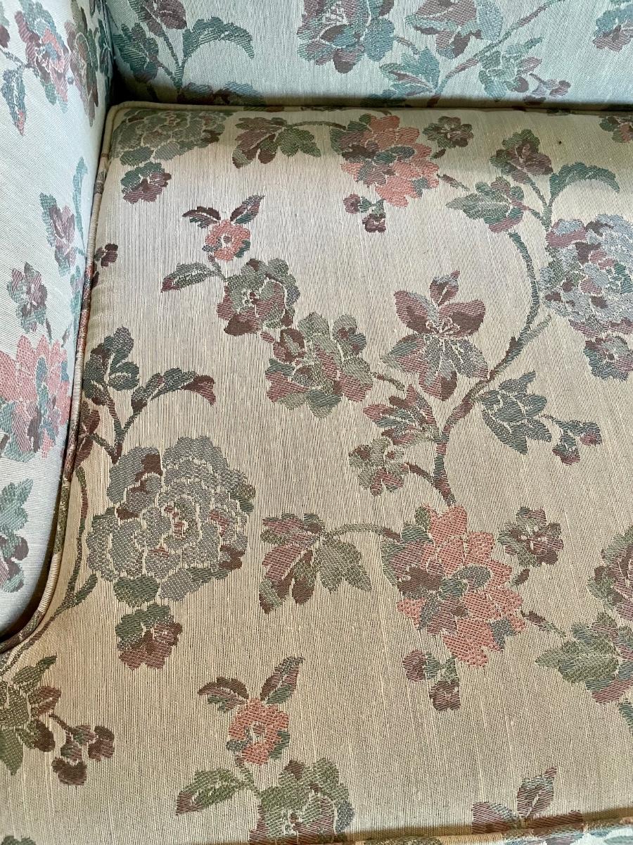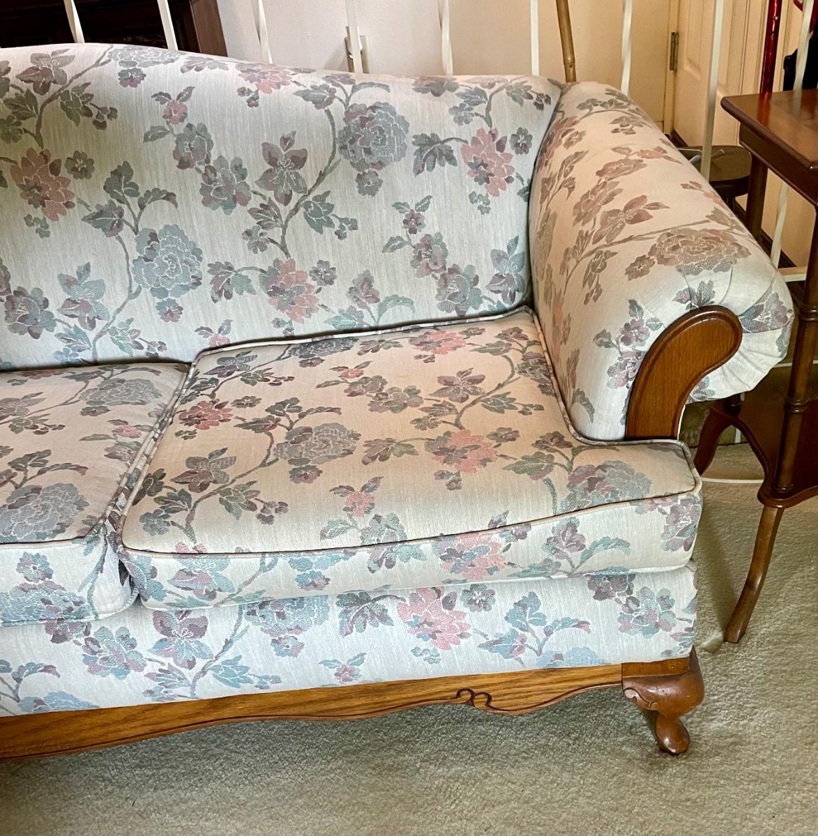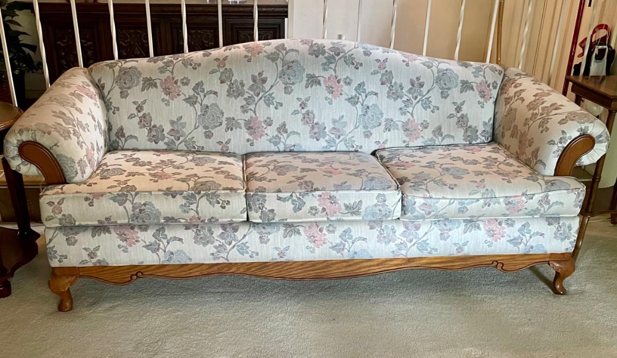 Made by International Furniture. 84” long x 36” deep x 33” tall. Good condition. Couch is in good condition, no holes, tears or stains. Another auction has the matching loveseat.