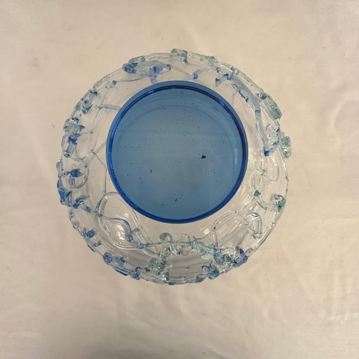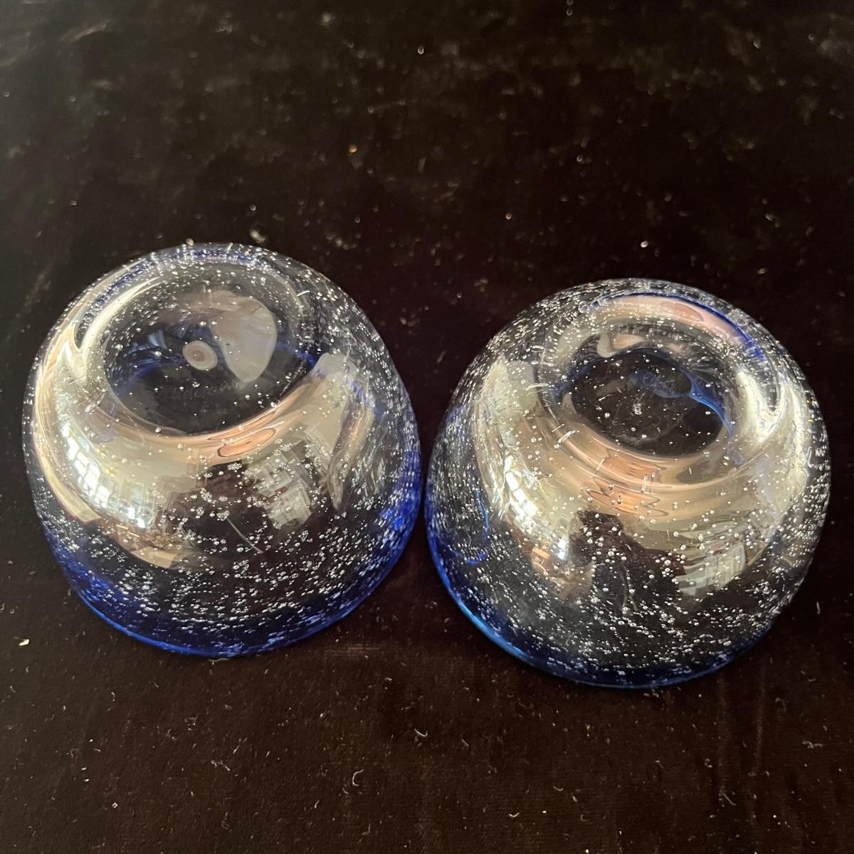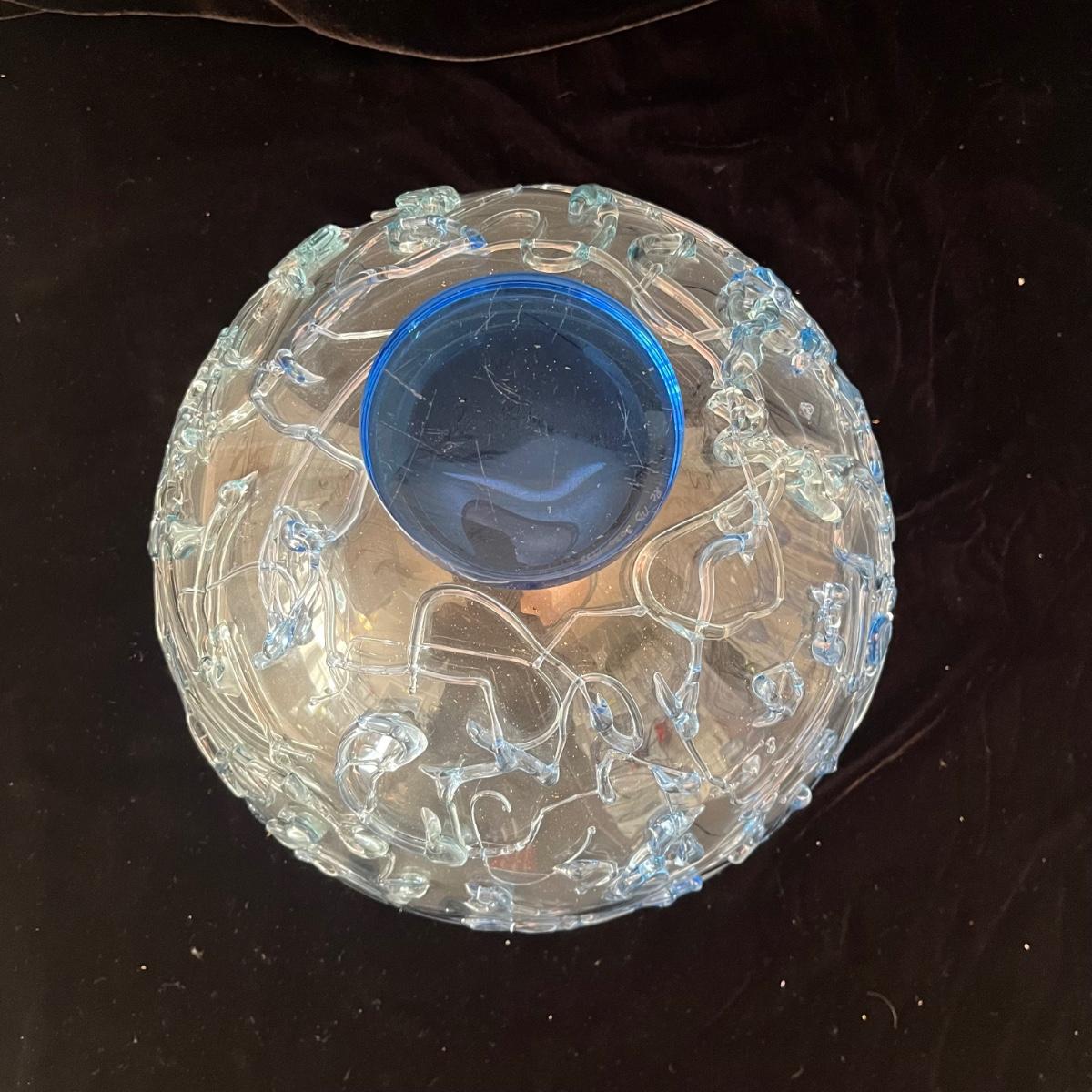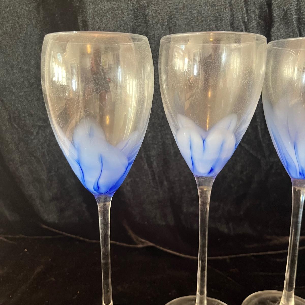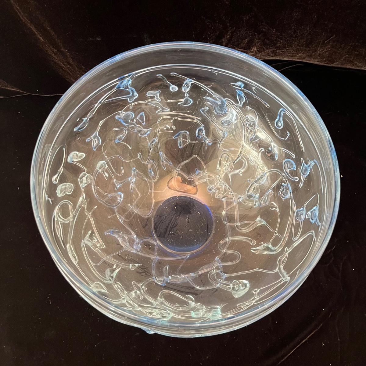 Lot includes six wine glasses with a floral design, two bubble glass bowls and a large glass bowl with a unique glass finish. Large bowl measures 10”D x 7.5”H.