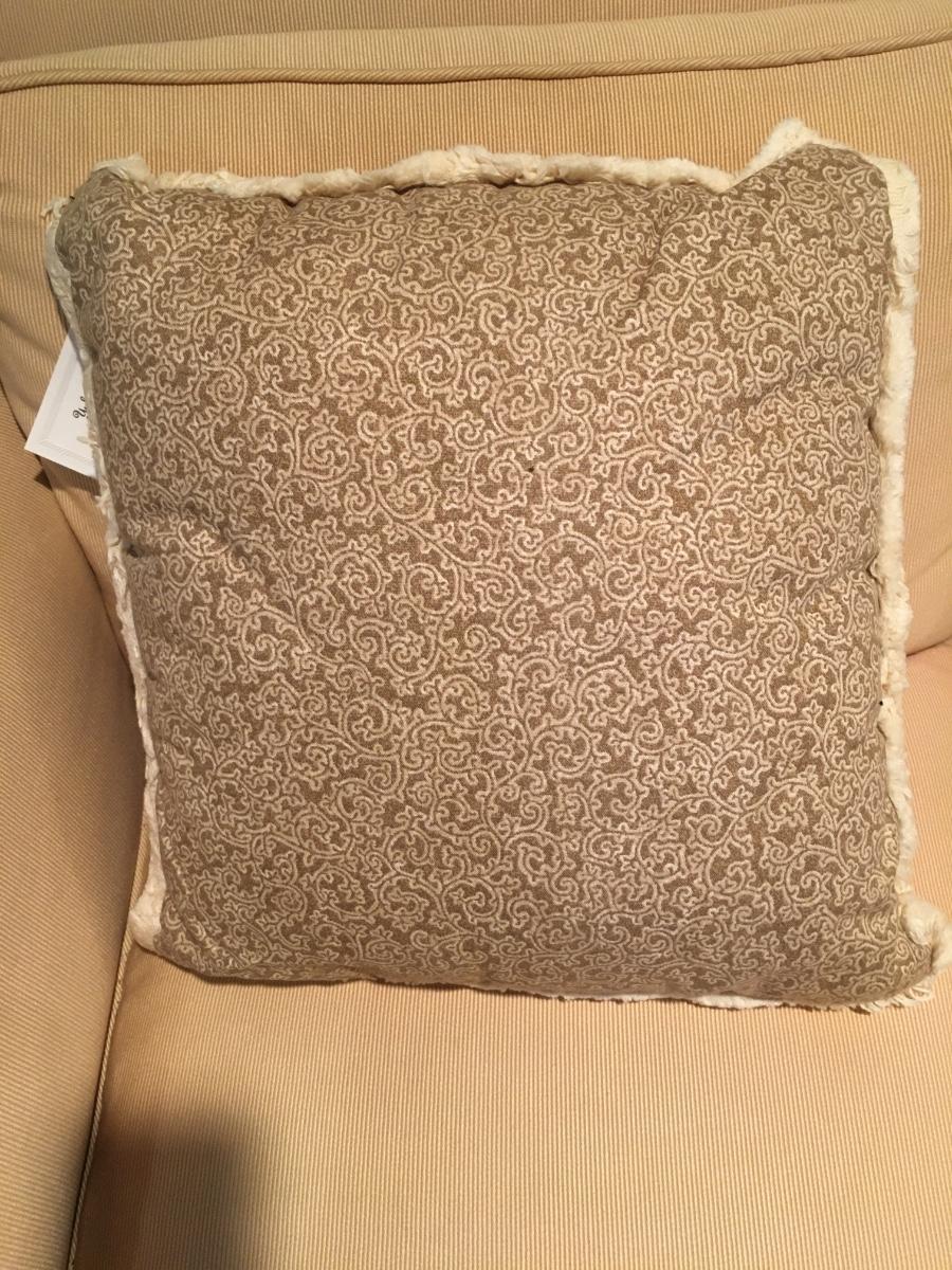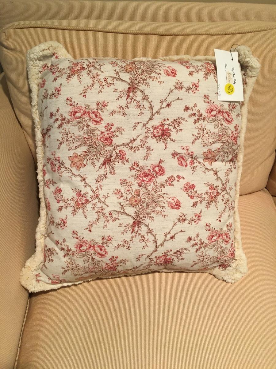 new with tags Floral patterned pillow with contrasting back fabric and fringe trim