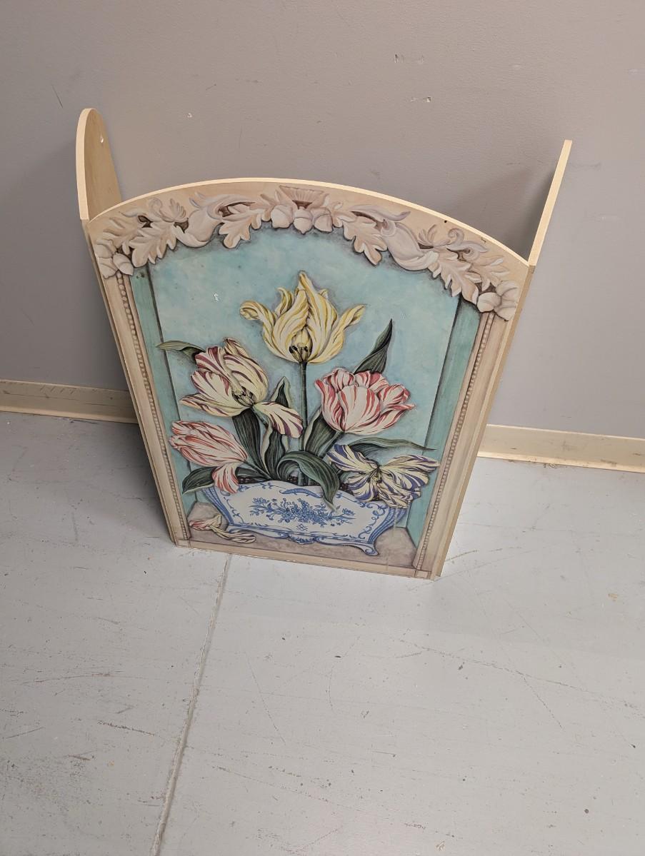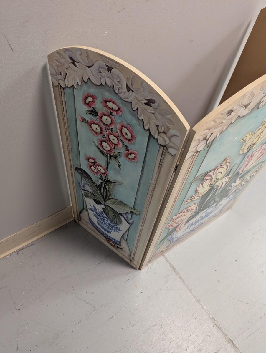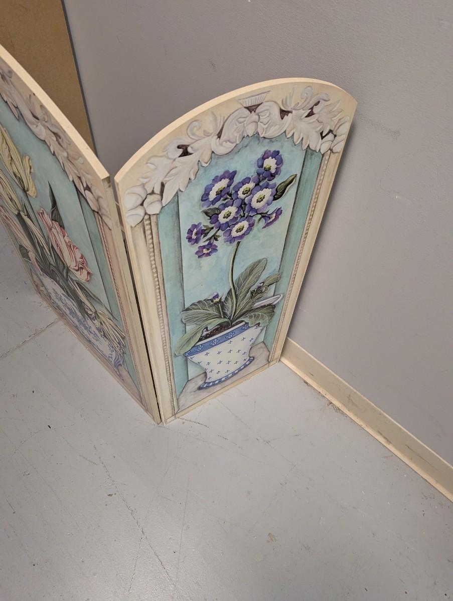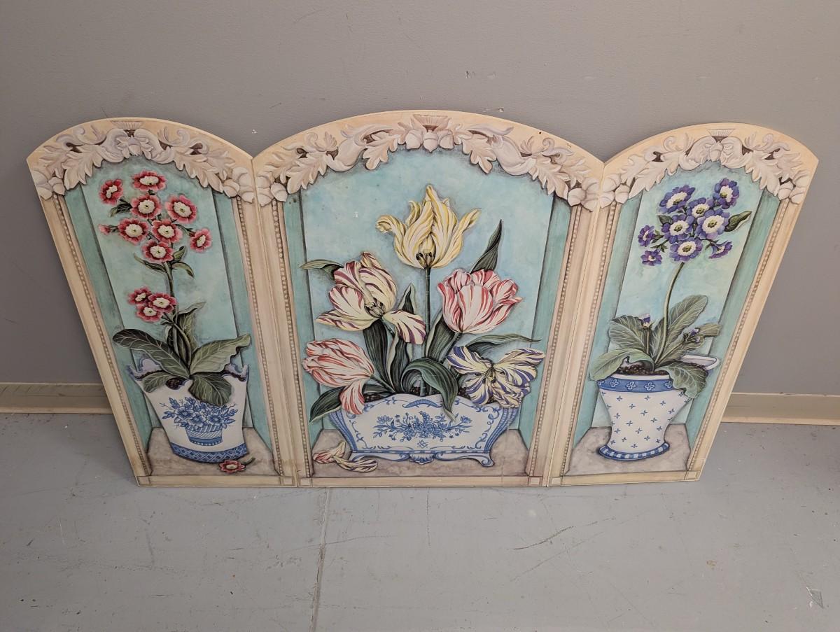 Floral fire screen, three panels. Blue, pink, cream. Stupell Industries USA