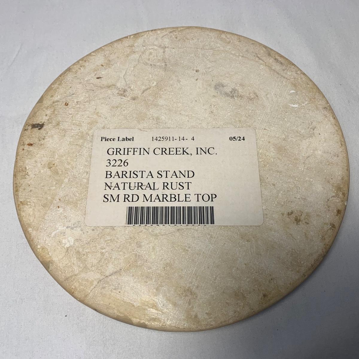 Marble barista stand measures, 8.5”D x 8.25”H.
