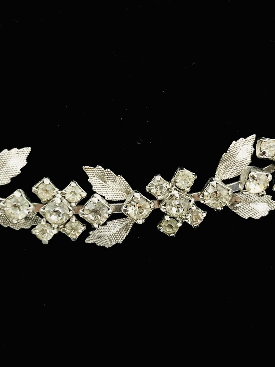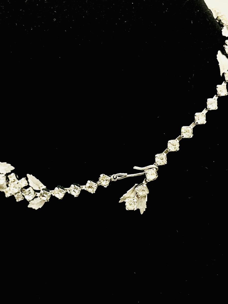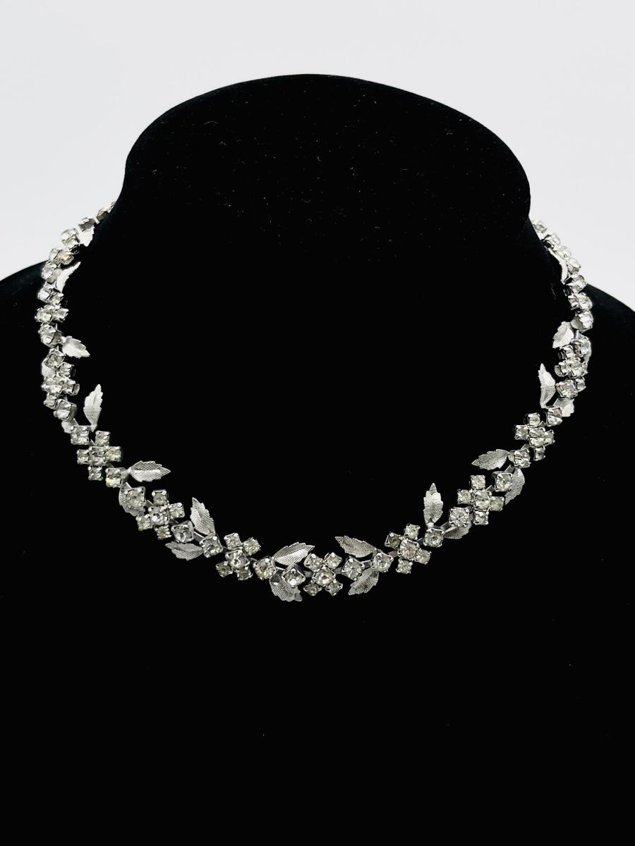 Floral & Leaf Design Rhinestone & Silver Tone Necklace