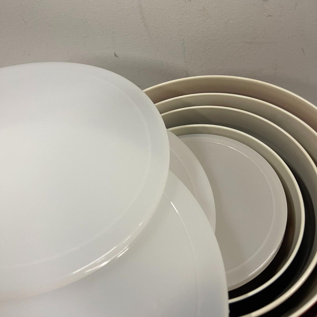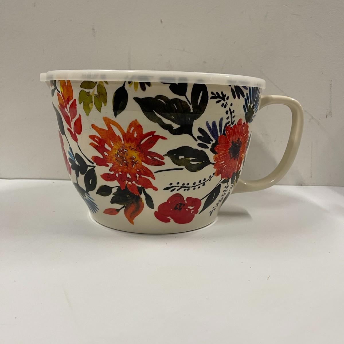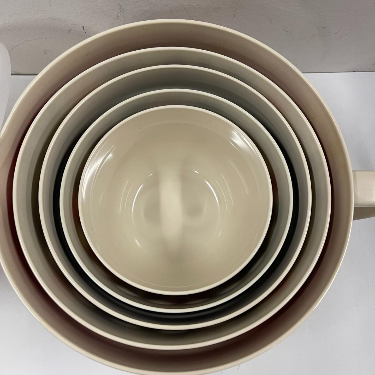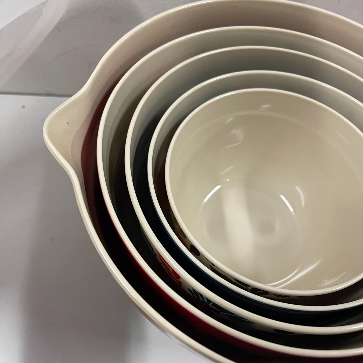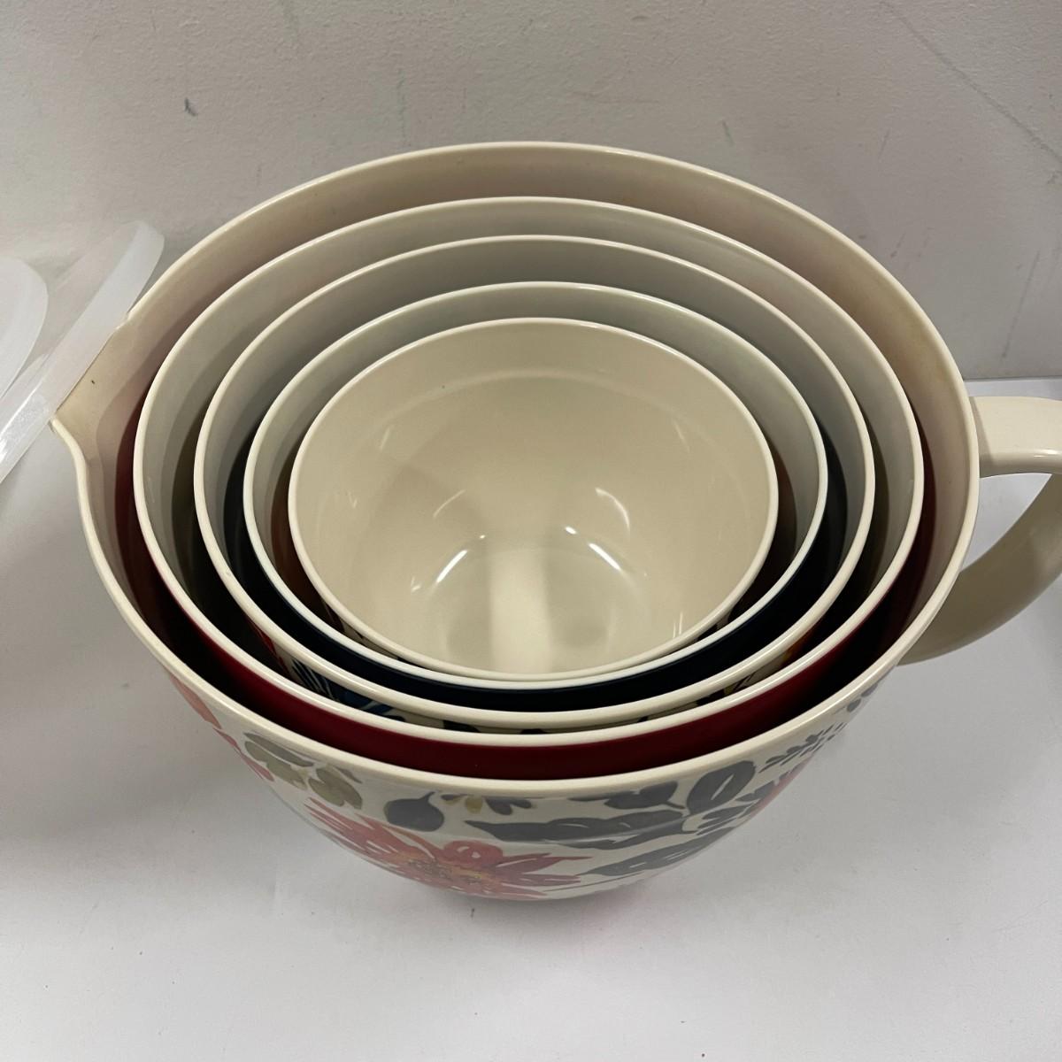Floral melamine nesting bowl set. 5 bowls with 5 matching lids. Excellent condition. 12" wide x 6 1/2" high.