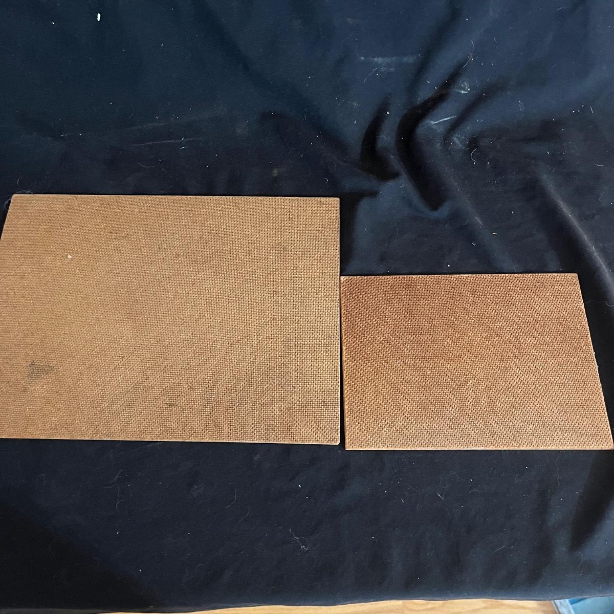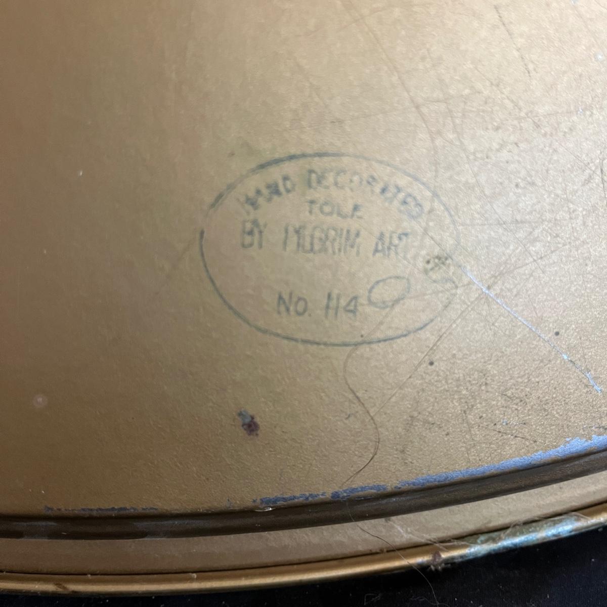 Lot includes a large metal tray with painted floral design and two painted boards with a floral design. Tray measures 24” x 20” x 1.25”H and has wear in one spot, see pictures.