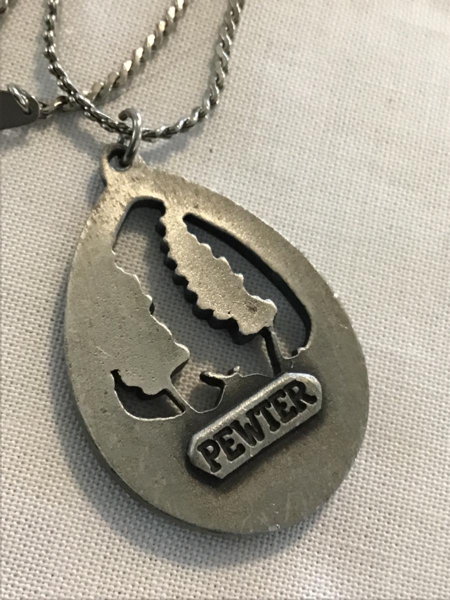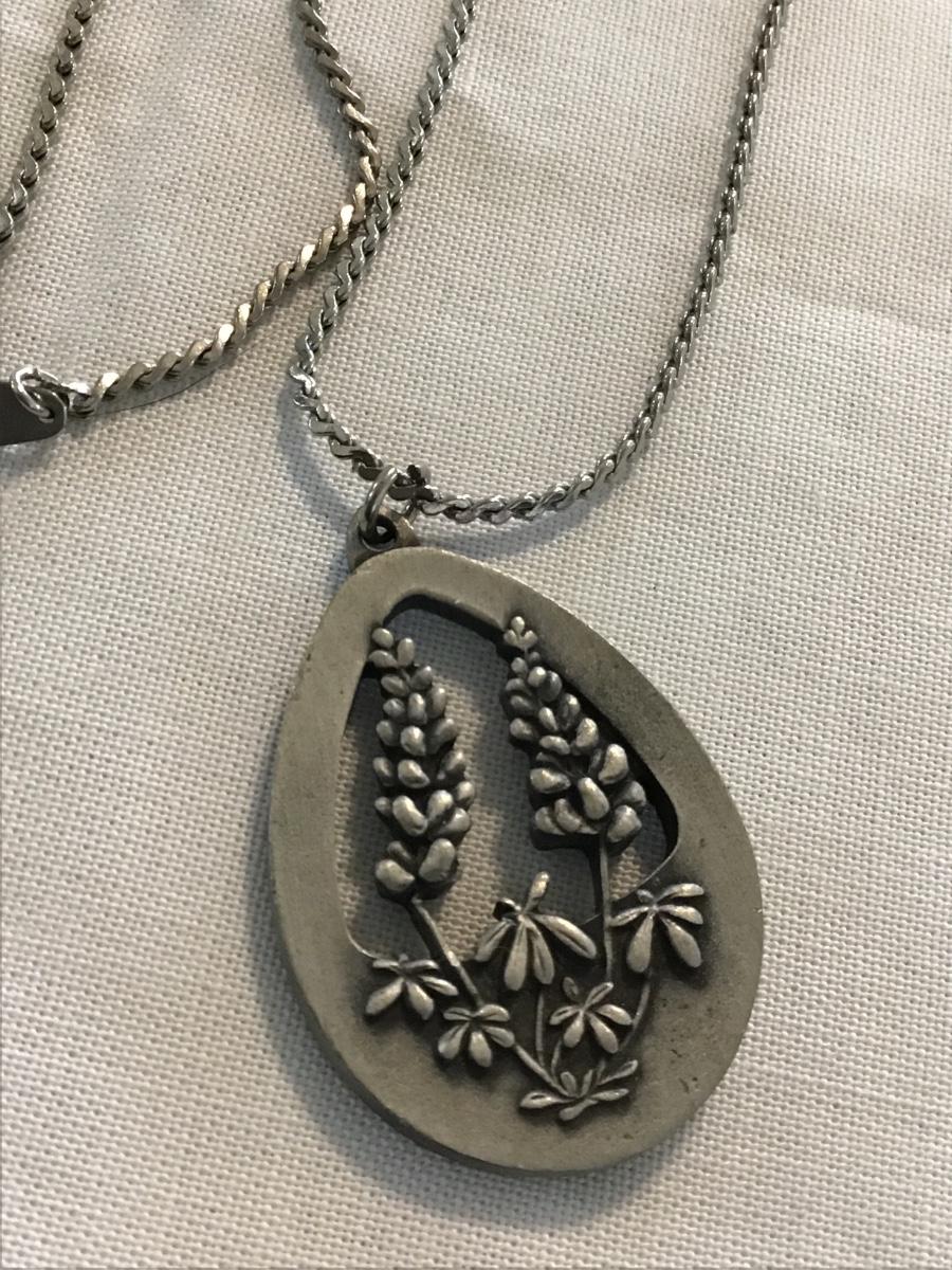 Floral Oval Pewter Pendant with Chain