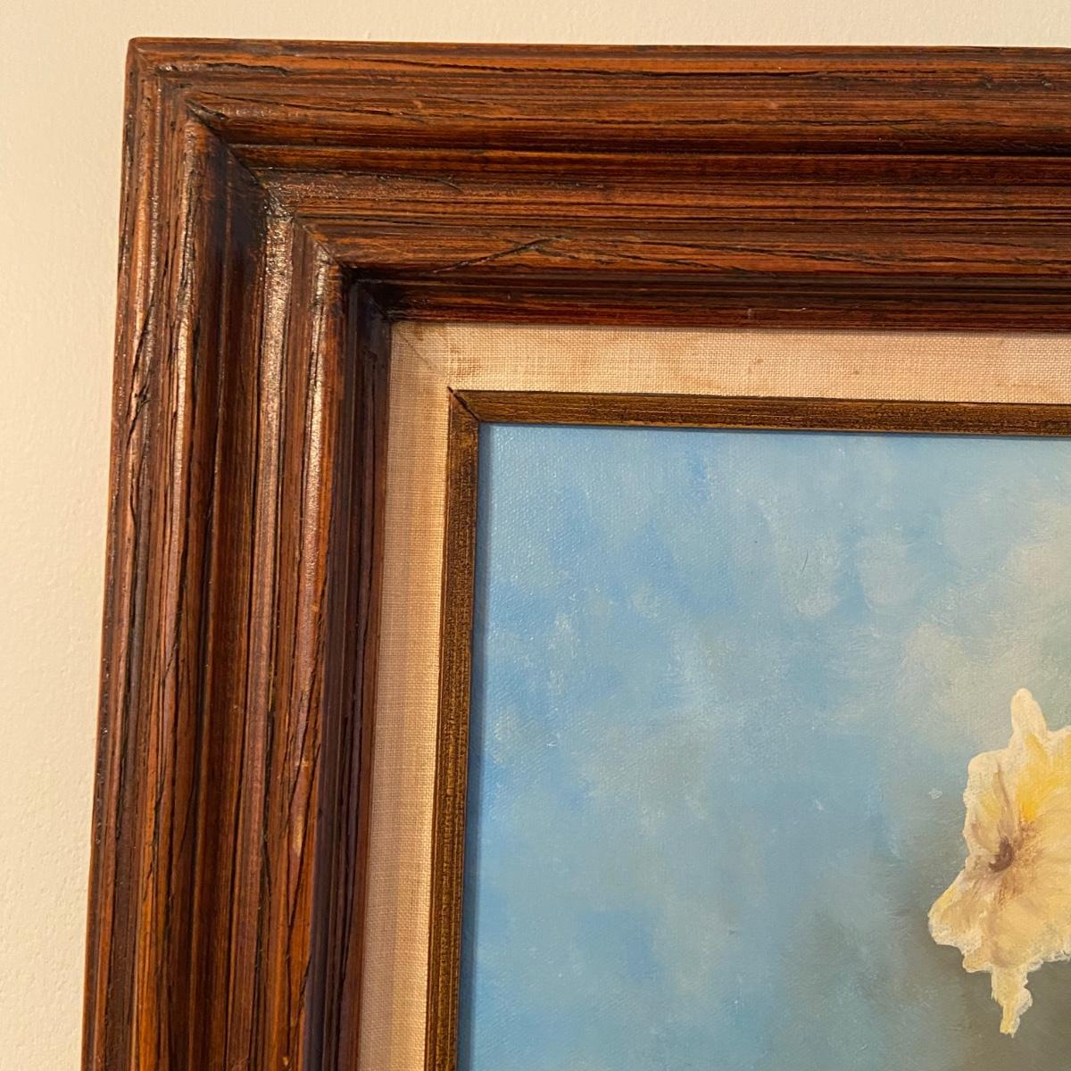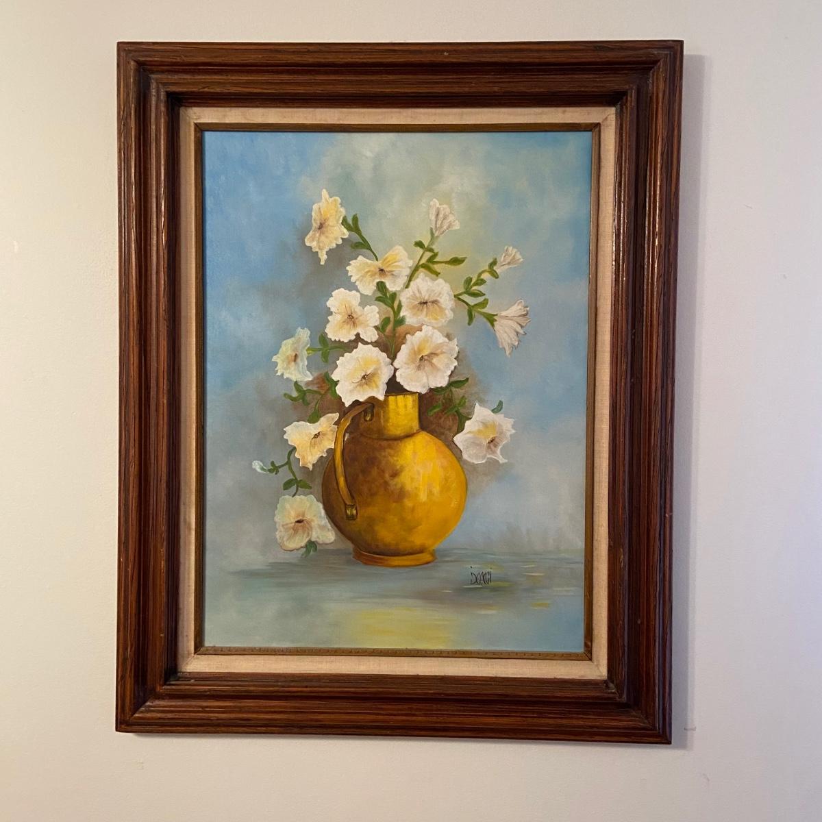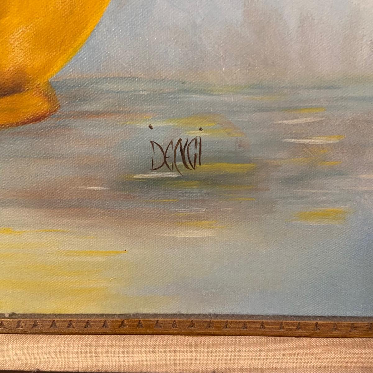 Appears to be an original painting with Denci signature. Wooden frame with canvas mat and wooden filet. The frame measures 25” x 31”H. Slight discoloration on canvas mat. Shipping available. Shipping can be costly. We suggest contacting our preferred local shipping provider, Postage Express, with dimension and getting an estimate prior to bidding: 828-255-9250 or email shipping@postageexpressnc.com.