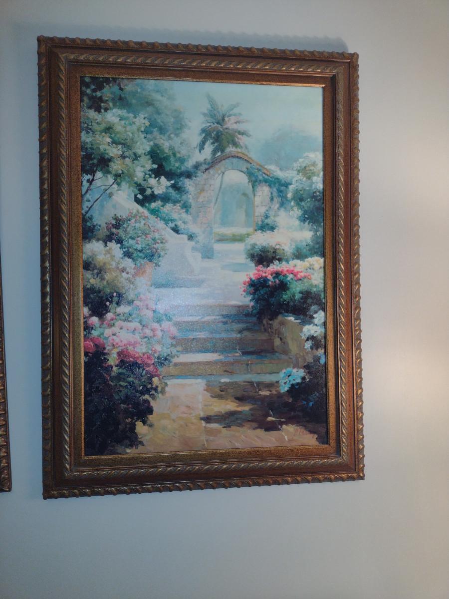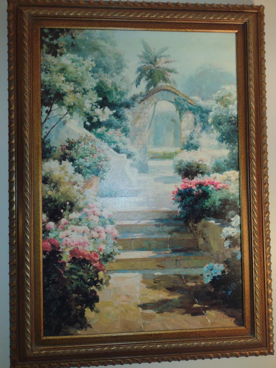 Floral Path Theme Framed Wall Art- Signed by Artist- Approx 31 3/4" x 43"