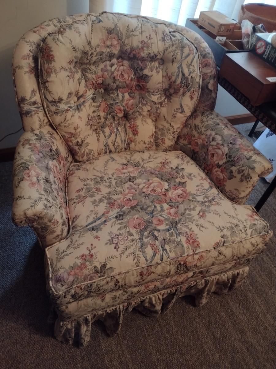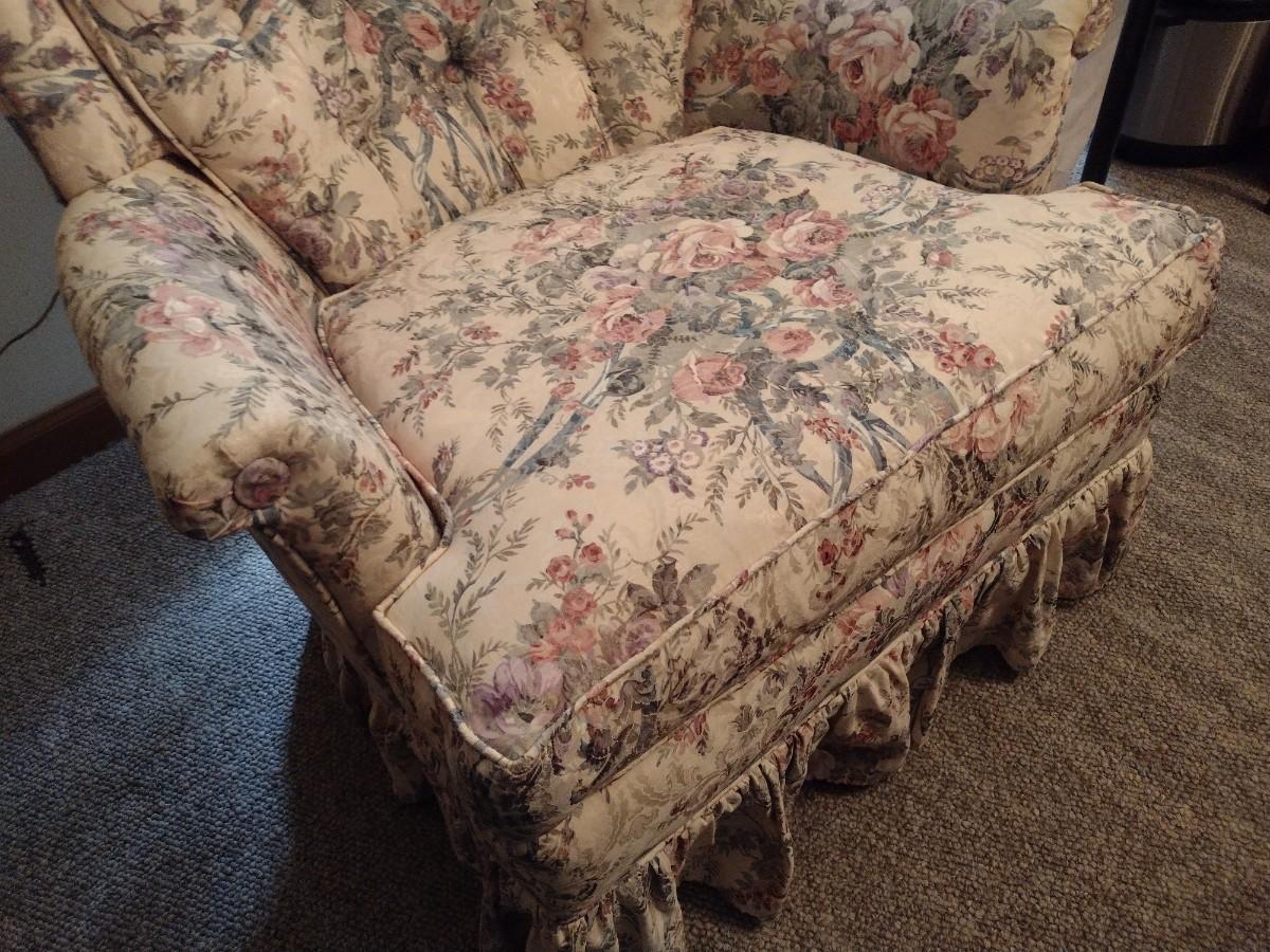 Floral Pattern Upholstered French Country Sitting Chair with Pleated Apron Choice A