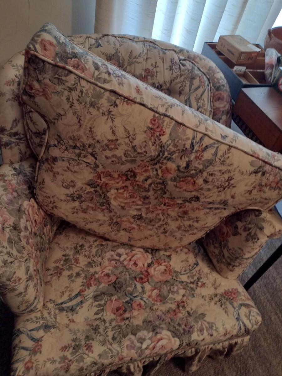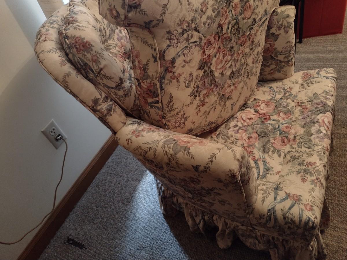 Floral Pattern Upholstered French Country Sitting Chair with Pleated Apron Choice B