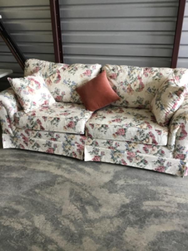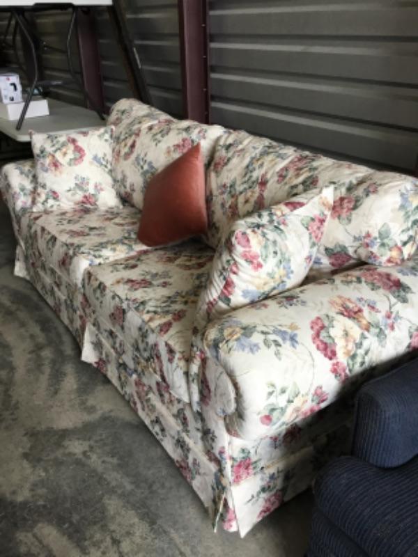 Floral print couch with three pillows 92 inches long lot 1027