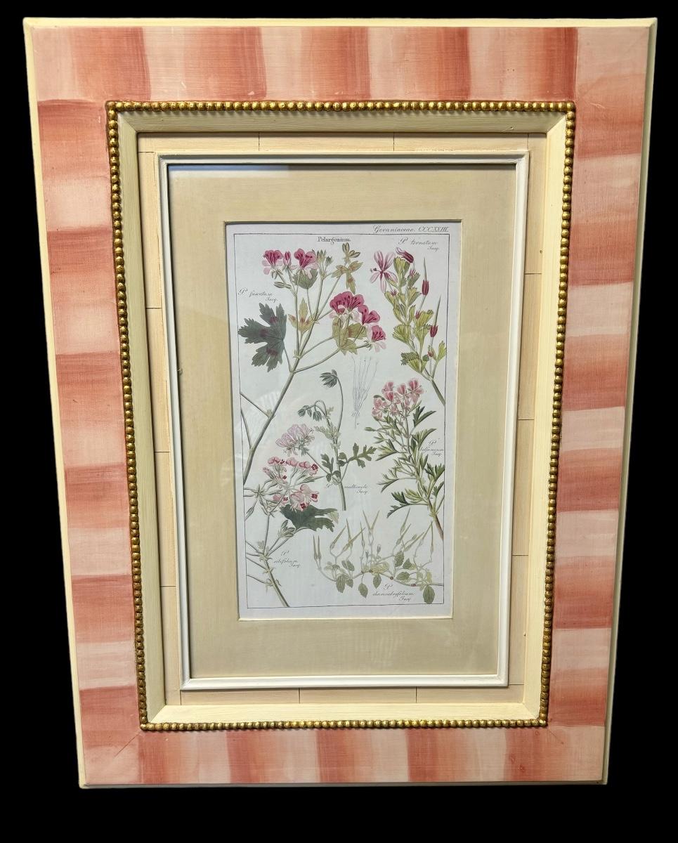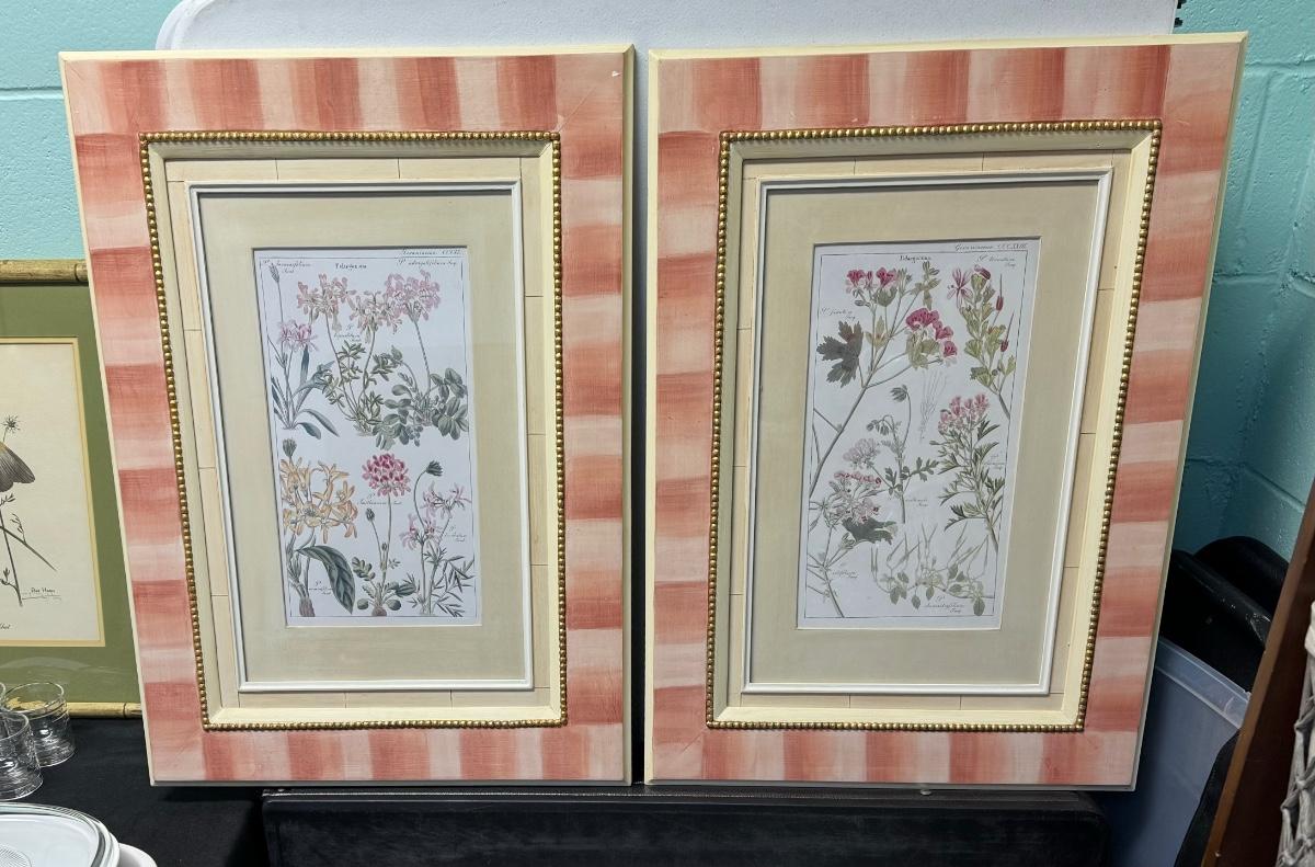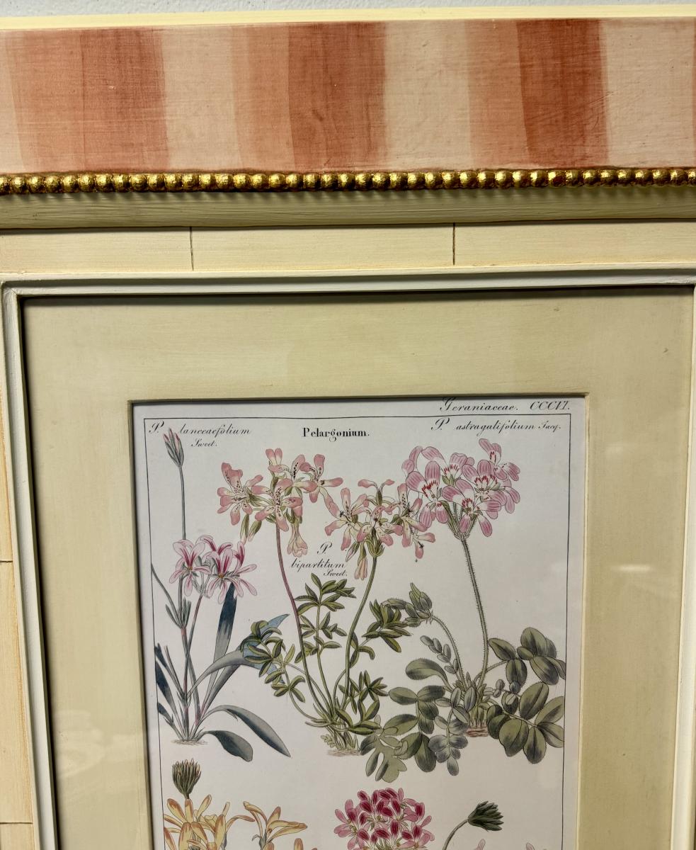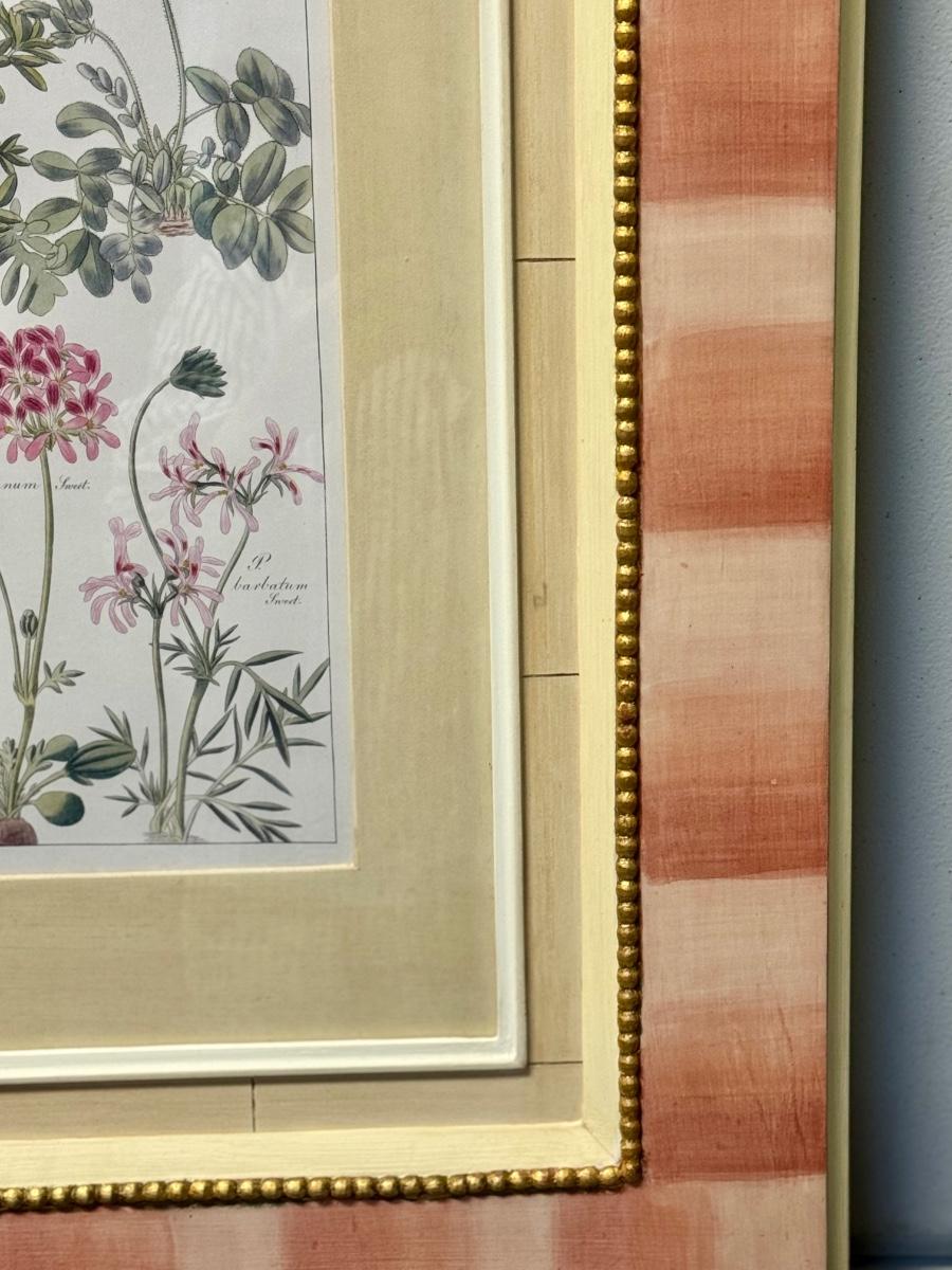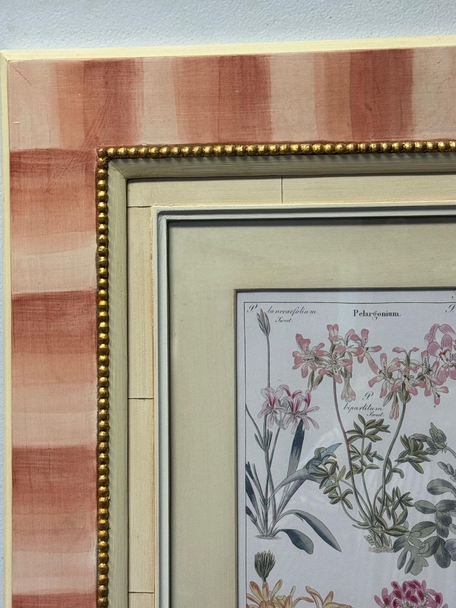 Purchased from designer Ann Tobias Miller Interiors. These prints are exquisitely framed. The wood frame is in pink tones with gold beading and recessed wood matting and additional ivory matte.